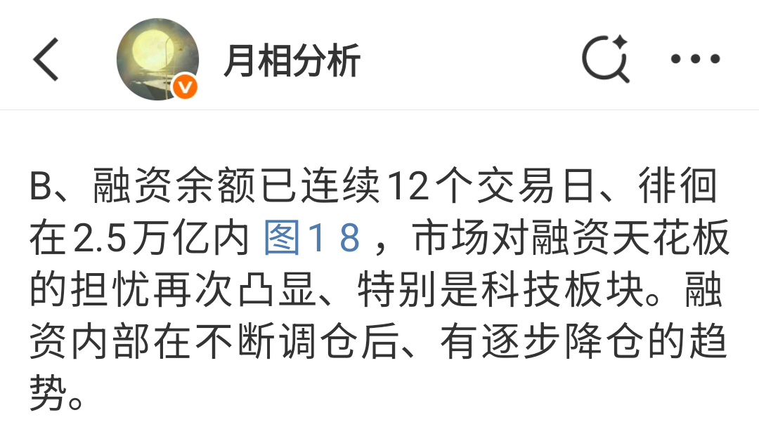 内外资都开始关注融资达峰后,融资真就有赶顶→达峰→降仓的趋势了,连续12个交易日、未进一步突破2.5万亿融资余额。从今天盘前发的v+早报也能看出,对科技板块的高低切已进行多日。