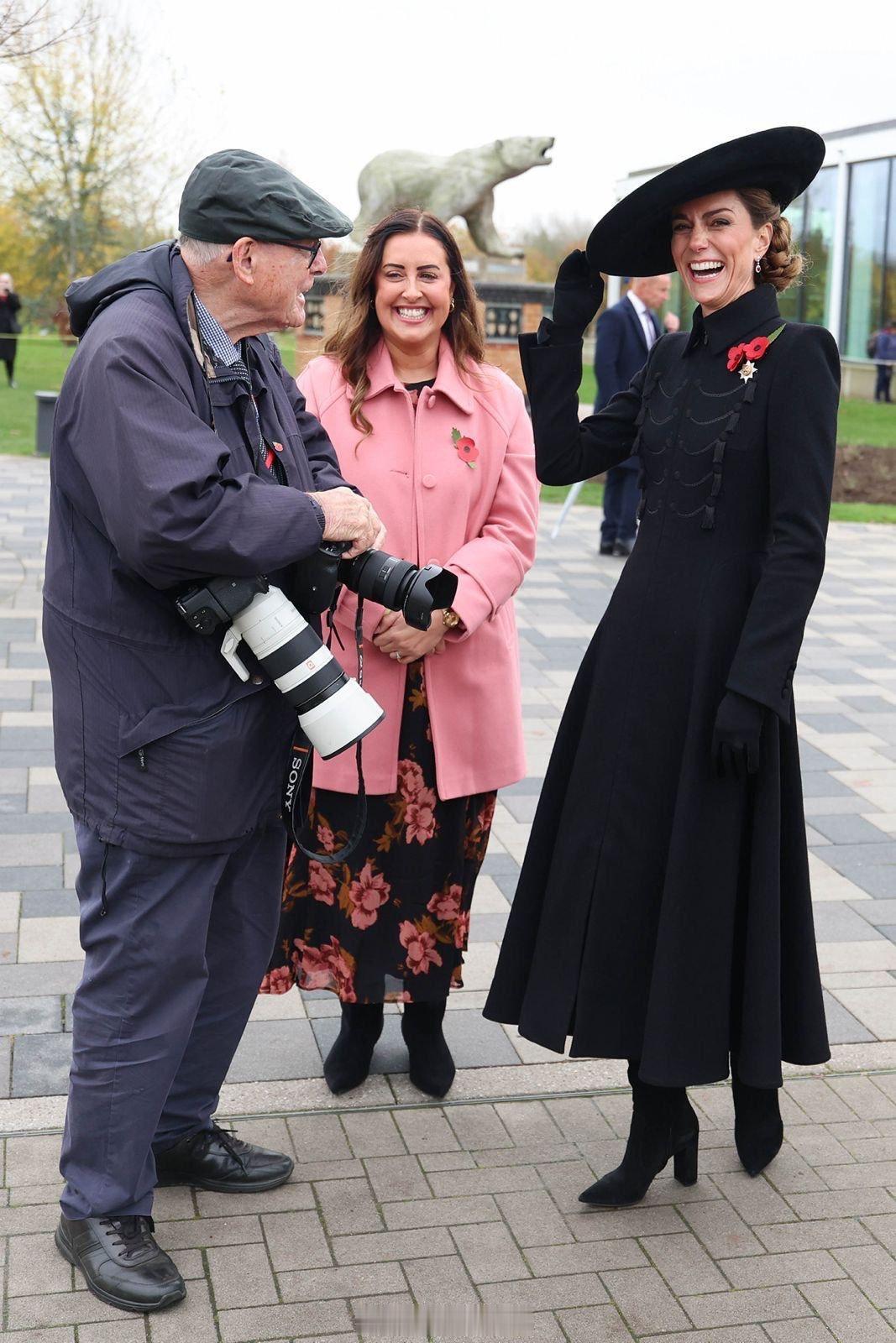 2025年11月11日,凯瑟琳王储妃在斯坦福德郡国家纪念植物园举行的一年一度停战日纪念活动上和著名的摄影泰斗Arthur Edwards交谈。