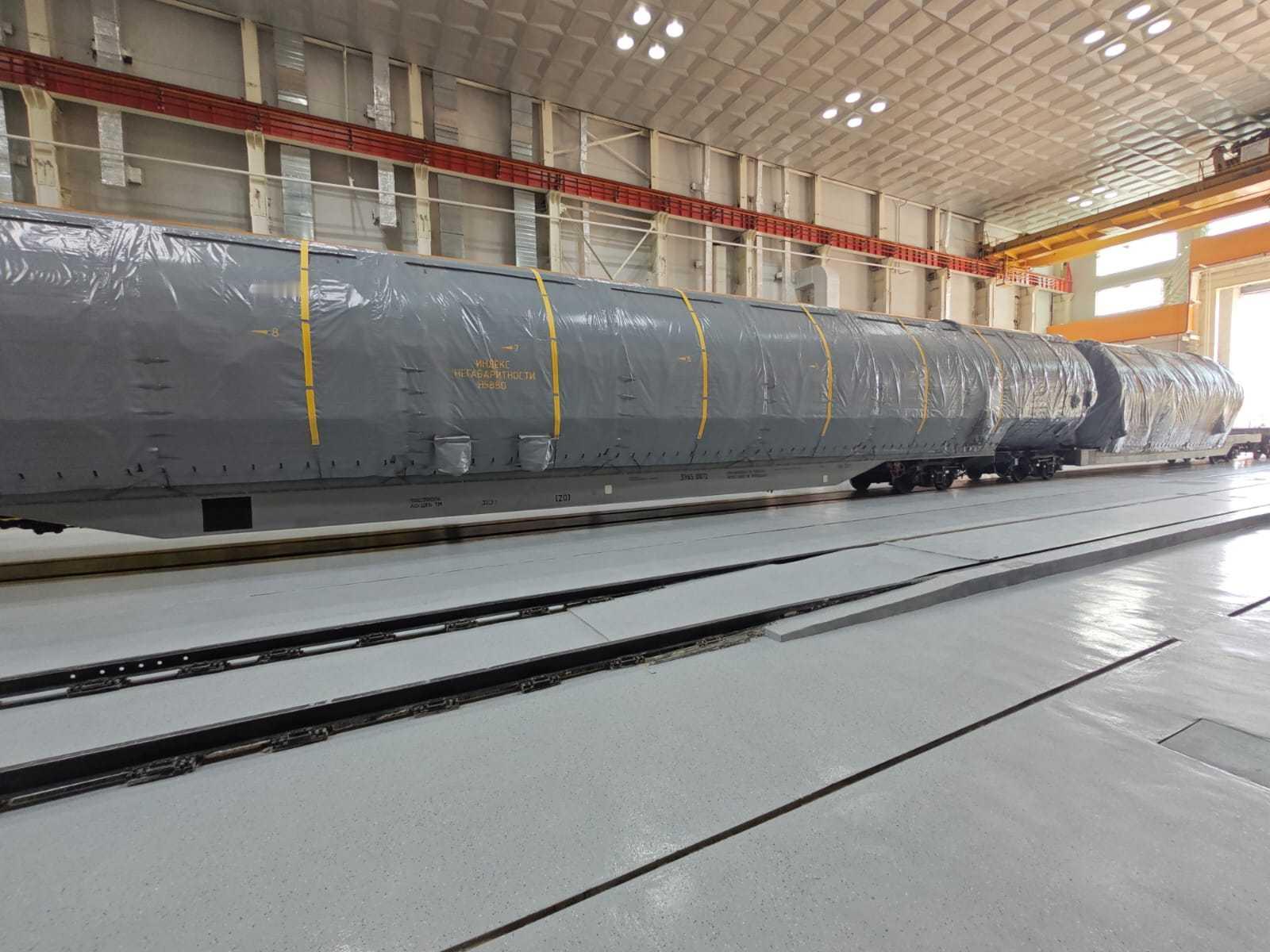 【联盟5首飞箭运抵拜科努尔】联盟5(Soyuz5)运载火箭的一二级已经同车运抵