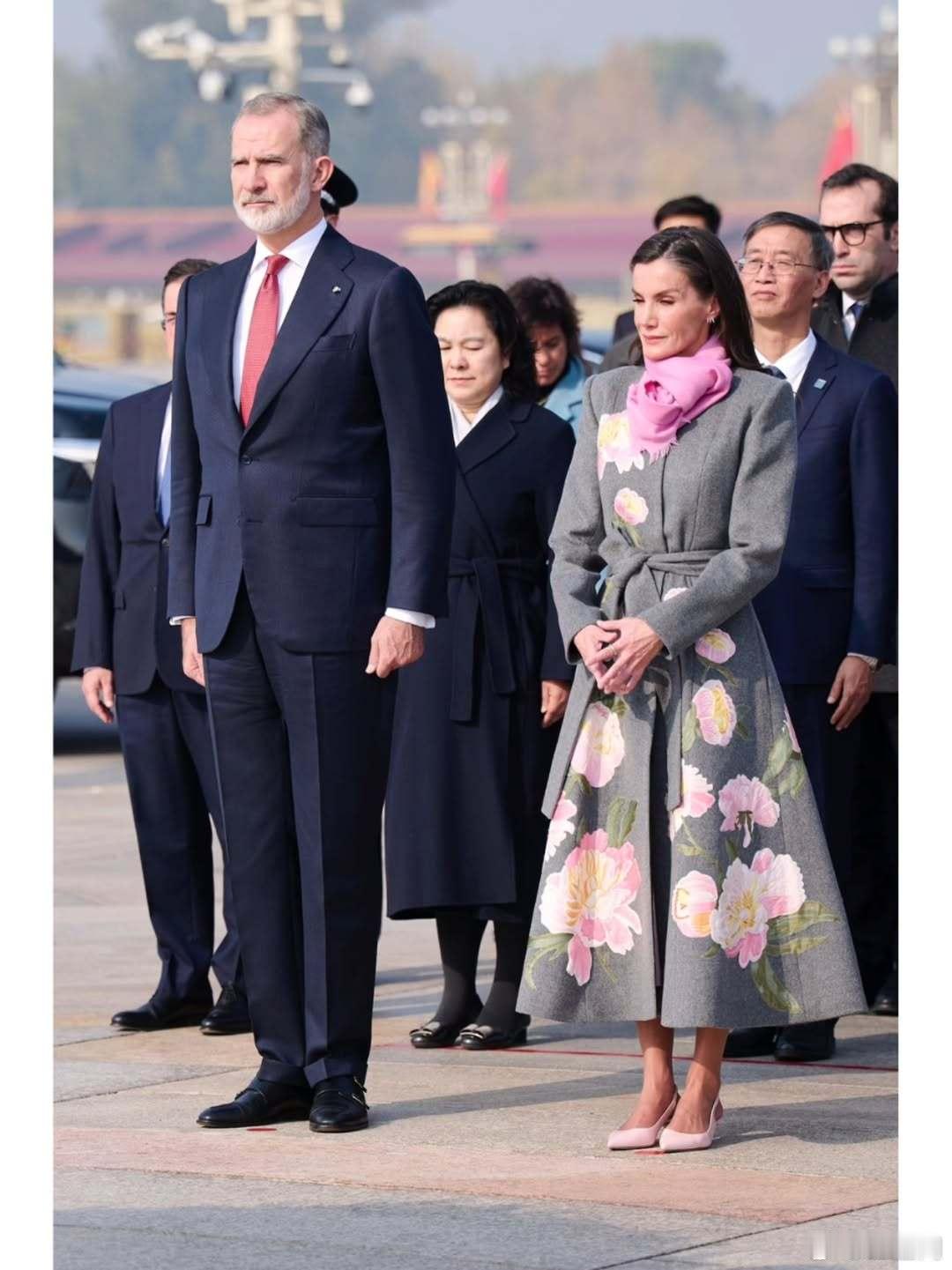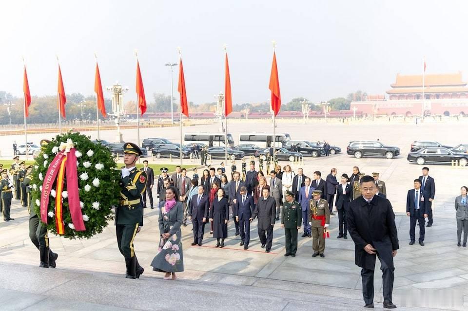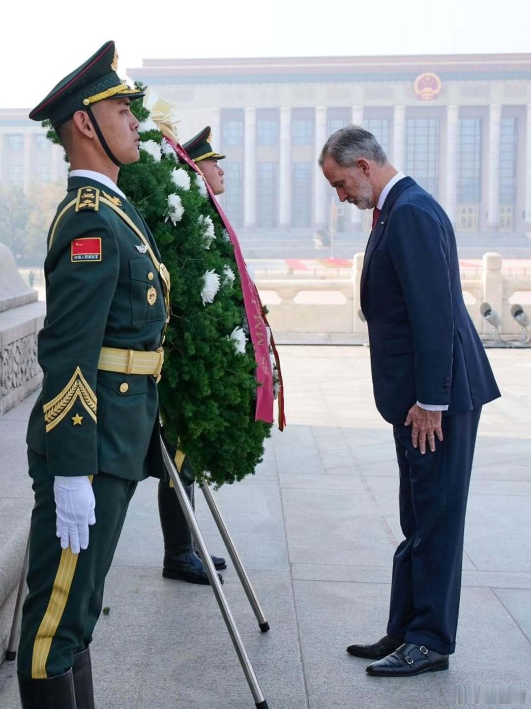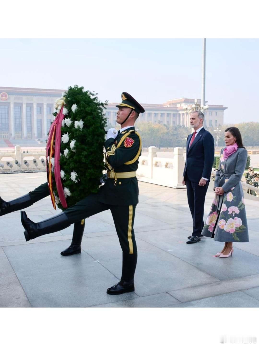 🇪🇸🇨🇳11月12日,费利佩国王和莱蒂齐亚王后在北京人民英雄纪念碑敬献花圈。 国王应该会感叹这雄伟的广场吧。