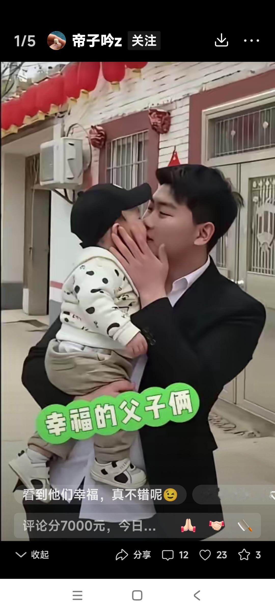 大衣哥朱之文的儿子朱小伟。 育儿模范,抱着儿子在亲嘴儿。 这朱小伟喜欢儿子,稀罕儿子,亲不够啊。 记录一下这幸福的时刻。