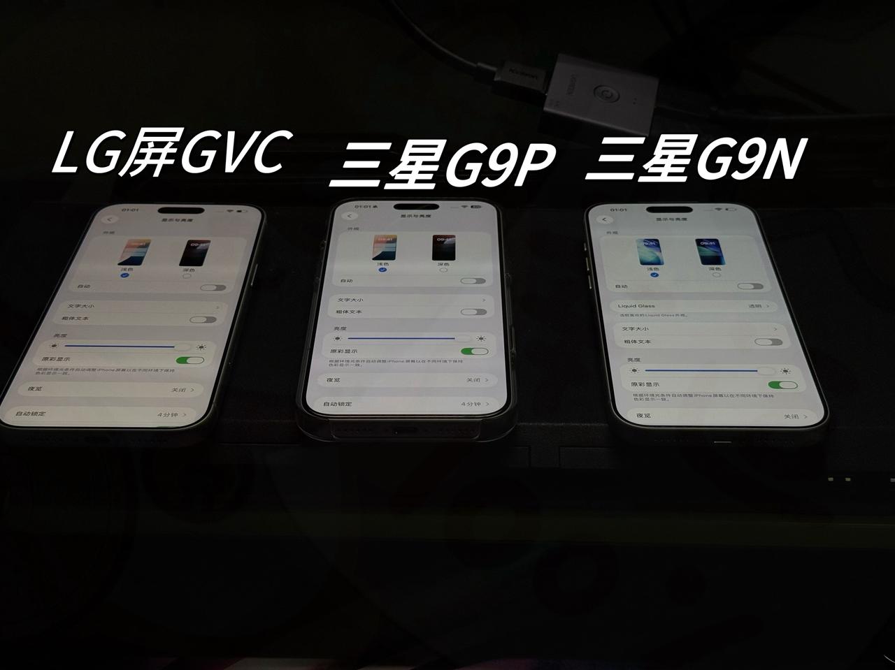 即便贵如万元的iPhone17PM,品控也一言难尽,甚至屏幕抽奖、跑分差距大... 测了三台机子,三种屏幕,可视角度最好的竟然是G9P,快来看看你的屏幕是啥 屏幕大战:三星G9P,三星G9N,LG屏GVC。 各个角度都对比了一下,从我自己的眼睛看过来,个人认为还是G9P好一些。 侧面来看:LG屏的GVC偏红,而G9N偏绿(实际前几代比如iPhone12也是),而G9P则稍微正常一点。 陆续开了有半个月的盒,不仅是我一个人,身边的朋友也都没想到G9N也就那样(可能手气不佳真的开到了第一批变色龙) 最后说一句,苹果每台机子的跑分也参差不齐,三台机子都跑了两遍分,但有的顶天23W+,有的最低28W+[捂脸]。所以跟安卓一个样,是芯片、配件等体质品控差异造成的