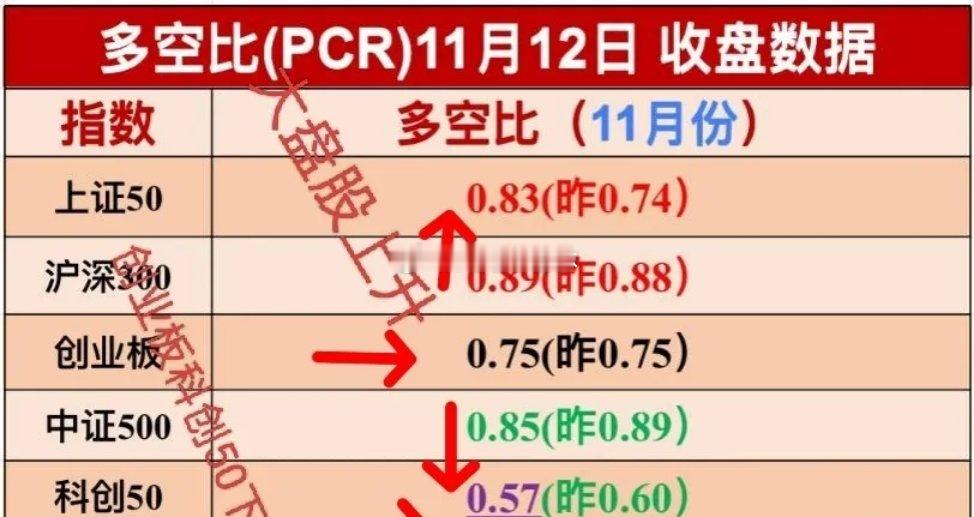 11.13外盘早餐,期货黄金大涨84美元每盎司,石油大跌4.3%。 美三大股指两红一绿,纳指小幅下跌,大型科技股涨跌不一,其中超威半导体涨9.0,美光科技奈飞涨幅超1.5,博通英伟达微软小幅上涨,特斯拉下跌2.05.,谷歌亚马逊跌幅超1.6%。美半导体芯片表现强势。 热门中概股多数下跌,其中金龙指数下跌1.46,恒生科技指数期货下跌0.67。小鹏蔚来icon爱奇艺百度理想阿里京东跌幅靠前。 证监会发声防止市场大涨大跌,光伏周三误杀,行业协会辟谣。 a股创业板指数杀跌接近尾声,随时都会止跌反弹,人形机器人将跟随创业板反弹。 创新药美股连续两天反弹,有望带动a股跟随。 附 12日多空比,除了300--50数值上升外, 中证500,科创50,看涨部位下降,创业板没有变动,主要是cpo药等板块反弹。科创50又来到0.6以下绝佳买入机会。 ..点赞转发关注投资理财不迷路