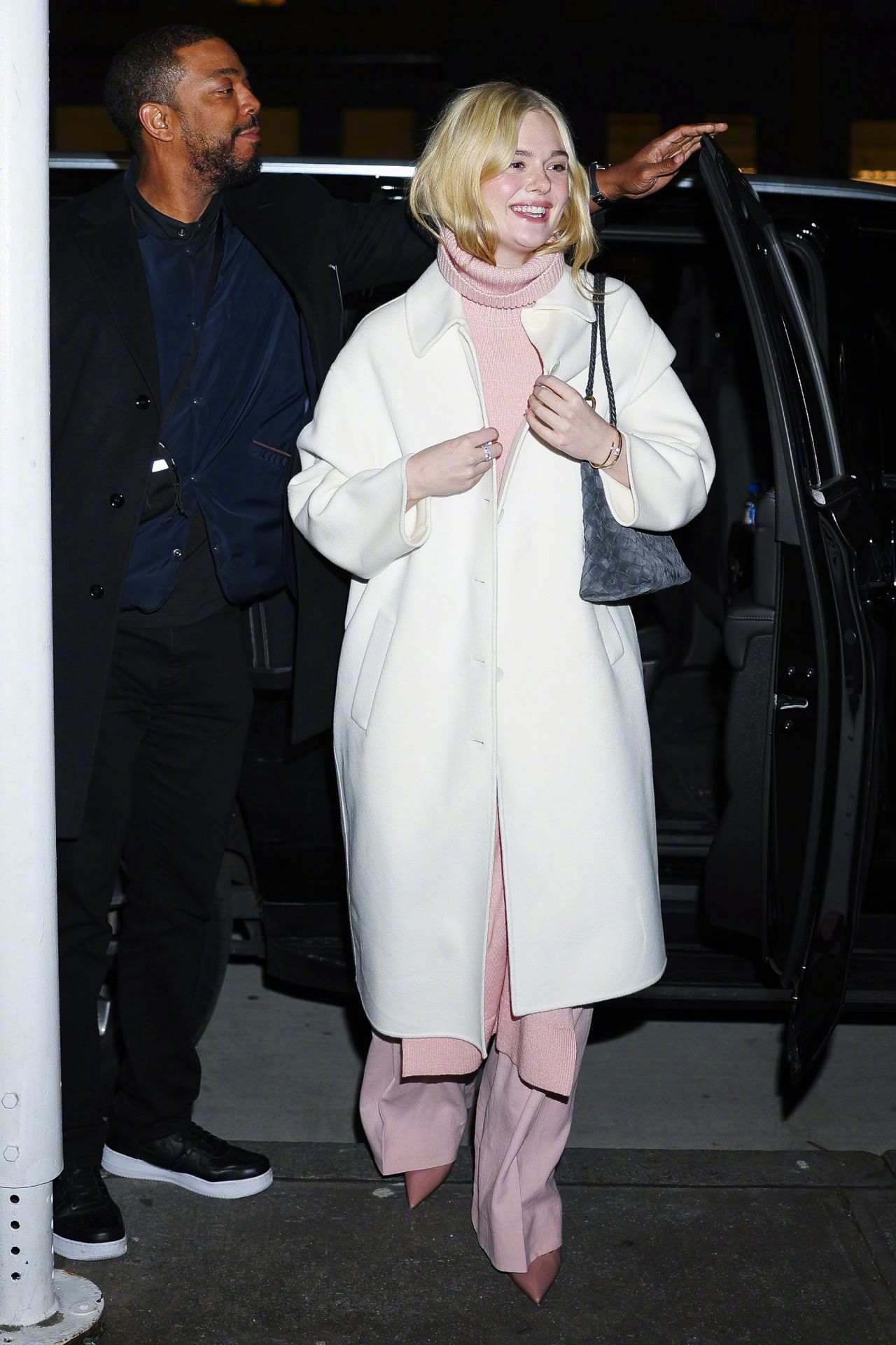 近日,艾丽·范宁在纽约市宣传新片《情感价值》的造型盘点,三套都是以符合她气质的清新色调为主打,呈现年轻又优雅的时尚风格。look1,身穿Bottega Veneta 2026 春季系列全套,脚穿Tod's 白色高跟鞋,手拎Bottega Veneta 包,佩戴Bottega Veneta 飞行员太阳镜。look2,白色大衣内搭Michael Kors 2026春夏系列粉色羊绒亚麻高领连衣裙和阔腿裤,佩戴卡地亚戒指,肩背Bottega Veneta 包。look3,身穿Rodarte 2026 春季花卉连衣裙,搭配 Manolo Blahnik 凉鞋和 卡地亚珠宝。