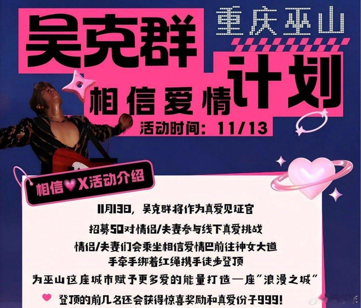 哇塞!吴克群这是闯进“甜蜜赛道”啦!“相信爱情巴”上情侣故事超甜,他全程“嗑糖”表情萌翻,配上巫山美景,这浪漫都快溢出屏幕啦!