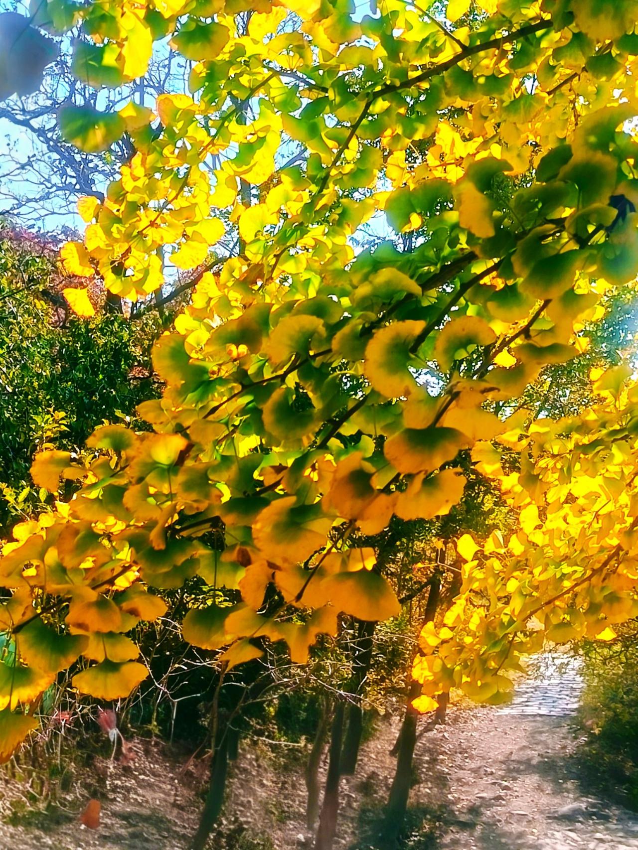 七绝•银杏黄时 方方(山东) 又是一年银杏黄, 寻山捕景半痴狂。 游靴踏遍黄金路, 笑语入诗三四行。 —— (平水韵)