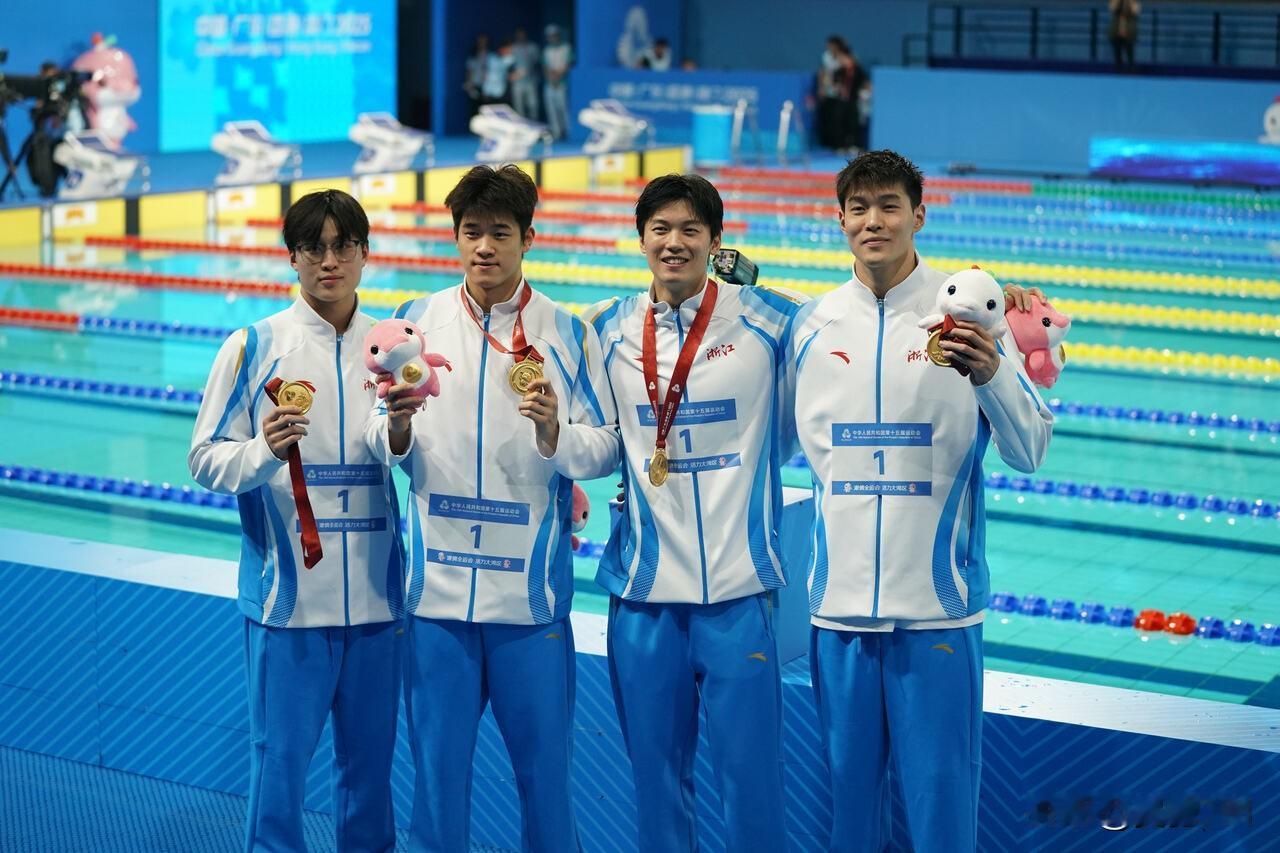 浙江游泳队,在本届全运会上的表现到目前为止是令人失望的: 1、队伍老龄化严重,啃老本可能是最后一届了。像徐嘉余、汪顺这种征战了五届全运会的老将,仍然是铁打不动的夺金主力,但看看河北的于子迪,山东的张展硕,这种有统治力的小将在浙江队根本没有。老本,是要最终吃完的,到下届,全队的金牌数可能还不及于子迪一个人多了; 2、女队无新人,且下滑严重。之前还有仰泳的傅园慧撑一下场面,现在连余依婷都一金难求,自由泳接力连山东都打不过,叶诗文还在苦苦撑着蛙泳,就知道女队有多难了; 3、明星选手兼项太少了。潘展乐只在100自有统治力,汪顺只在200混有绝对优势(今年的400混我看也比不过张展硕),只有徐嘉余的几个仰泳可以在国内称下王。而看看于子迪,张展硕个人项目基本都是三块起底。 所以这次全运会浙江泳军金牌数可能连十块都难拿,这样一来,本届全运金牌总数可能挤不进前三了。江苏大概率会把浙江队挤下来。