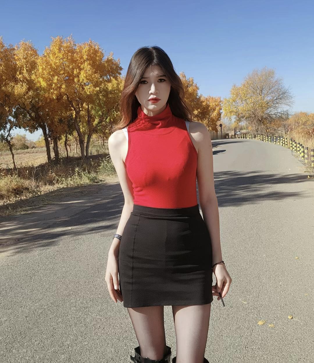 都市时尚风,红衣皮裙,尽显潮流魅力!
