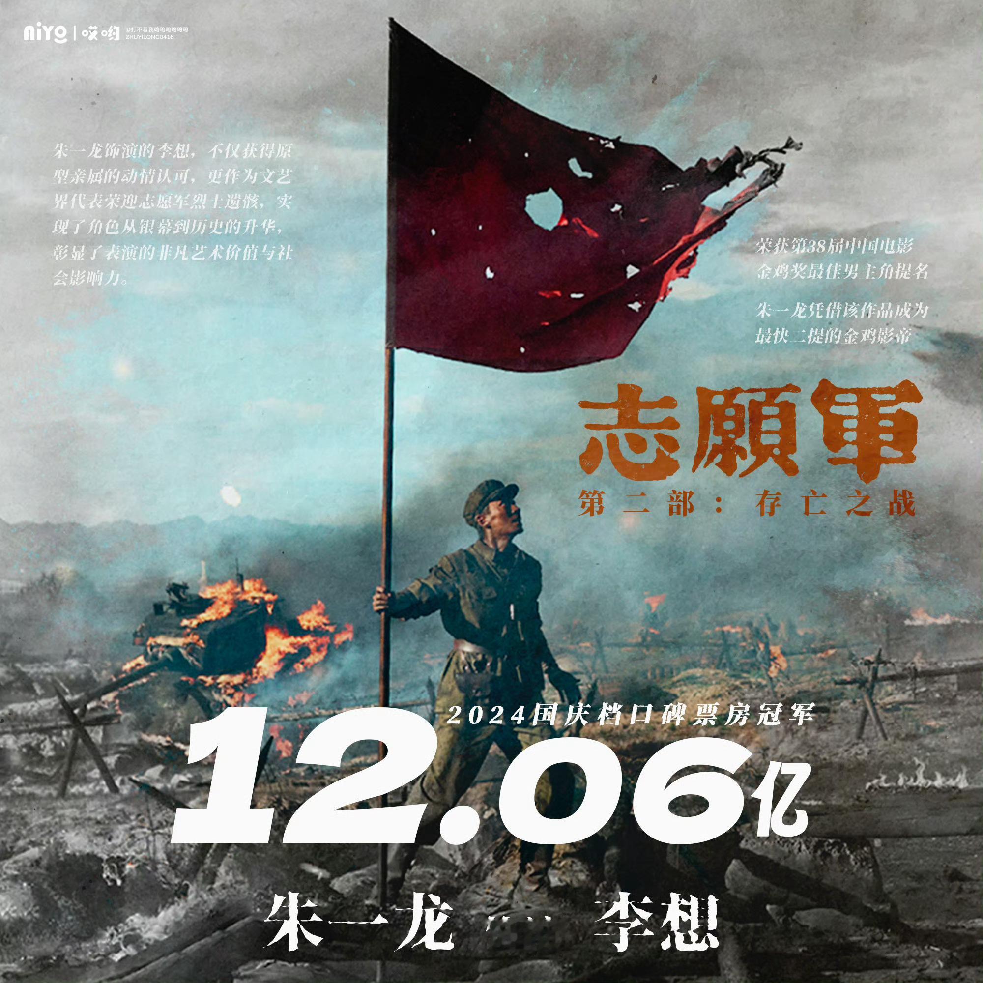 恭喜【首提即中】的【金鸡影帝朱一龙】再次提名金鸡奖最佳男主角,成为【最快二提】的金鸡影帝