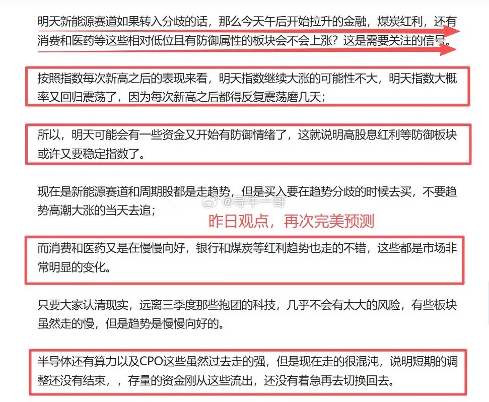 股民散户早该醒醒了,主力资金利用4000点反复震荡开始进行调仓和风格切换,大科技持续的调整下跌出货,市场高低切换风格都那么明显了,还继续选择自我欺骗吗?主要说几点:1、昨晚美股市场再次大跌,关键是美股科技股又一次大跌了,美股科技股的大跌一点都不意外,因为从10月下旬以来,华尔街那些投资大佬持续在担忧美股科技股泡沫的风险,主要是以AI人工智能和机器人的投资泡沫风险;从近期美股科技股的走势来看,尽管下跌之后有反弹,但是科技股的风险并没有消除,所以美股科技股的泡沫还在继续破裂中。很显然这对于A股市场上以AI人工智能还有机器人等为主的科技股造成了影响,大家不要觉得美股科技股崩溃和A股市场无关,这种 关联性其实还是比较大的,尤其是海外算力以及CPO光模块这些。2、很多人都把昨晚美股市场的下跌归咎于美联储12月份降息预期下滑,但我觉得这不是关键原因,最主要的原因是投资者对于美股科技股泡沫的担忧,还是认为科技股估值太贵了。其实机构资金的想法都是一样的,为什么从10月份下旬开始A股市场的那些抱团科技股也开始纷纷高位回调?主要也是机构资金认为估值不低了,本身这些机构资金有了较高的利润,现在外资机构又在唱空AI科技的泡沫,所以内资机构提前兑现利润离场,这是很直接的逻辑。所以,不管是美股市场还是A股市场,其实都已经体现出了对于科技泡沫的担忧,遗憾的是A股市场上很多股民散户意识不到这一点,我也算是10月份开始就反复给大家提示要兑现高位科技股的了,但有多少人行动了呢?3、从国庆节开始,科技股回调,市场初步透露出高低切换防御信号,开始提示抱团科技风险,大家只会觉得我是阻挡大家赚钱的步伐;10月底三季度业绩披露,给大家说业绩利好兑现,以算力还有CPO等科技借着业绩利好兑现出货离场,大家不相信科技行情就此结束;11月初,科技股延续调整,大家只会觉得科技如果不涨的话,大盘那不得持续暴跌吗?所以坚定科技是主线,依旧是选择不为所动;现在已经到了11月中旬了,半导体还有CPO等还在继续调整,很多人觉得科技调整的差不多了,该反弹了吧?结果今天科技还在集体调整,近期最强的存储芯片涨价,也开始高位补跌了。所以,以半导体,算力,还有光模块等那些三季度炒作过的抱团科技,是洗盘还是出货?这是一个不需要再做解释的话题了,出货都持续那么久了,很多人也该醒醒了。4、为什么大盘指数要保持在4000点上下反复震荡?因为机构资金要进行调仓和风格切换,不可能所有的资金都要高低切换,所以有些资金早早的兑现离场休息了,这也是A股市场成交额下降的一个重要原因。场内的一些其他机构资金则是开始高低切换,资金流向了新能源赛道抱团,资金又去了银行保险煤炭等高股息红利做防御,还有资金流向了消费还有地产等传统行业做低位布局;因为科技股衰退了,那么资金从科技成长切换到权重蓝筹还是可以稳定大盘指数的,所以大盘指数还会是4000点反复震荡。但如果大家意识不到风格切换,还是继续坚持科技成长的话,这段时间很多人的操作体验感会很差,这就是资金调仓带来的的直接结果。所以,保持4000点反复震荡,实际上是主力机构要进行调仓,不能让指数大涨大跌,涨得太快了就没有办法低位建仓了,而跌的太多的话,那股民散户又不会进场,机构先要从科技切换到其他也比较难,因为大家都不敢进场操作了。5、最后,对于今天的A股市场来讲,我觉得但凡是近期持续跟踪观点的人,现在市场的节奏几乎是非常了解了因为只要不去碰那些大涨过的大科技,现在的下跌也不会太影响自己的持仓,只要不去盲目抄底那些半导体还有算力以及CPO等,也不会轻易被套牢;美股科技股大跌,今天A股市场首先做的是医药,石油,银行等这些高股息防御板块,这样可以稳定大盘指数,也符合自己高低切换的特点;而新能源赛道今天正常走出了分歧,因为昨天日内高潮了,现在只要板块当天高潮大涨,第二天就是分歧,这点也不意外,不过现在新能源赛道的趋势还是最强的。而今天存储芯片开始补跌,半导体还有CPO则是继续调整,我相信很多人早就有应对策略了,之前或许有些人重仓了科技,不愿意相信我的看法,但现在看到大多数的科技确实是走出货状态了,或许最能感同身受吧。我能对大家说的是,这个市场不是没有机会,而是机会不再偏向于三季度大涨的那些AI硬科技了,如果你早点相信风格切换和高低切换,早点去做防御,那会深刻理解我的观点的。点赞,是对我最大的支持,关注我,时间会给你最真实的答案。