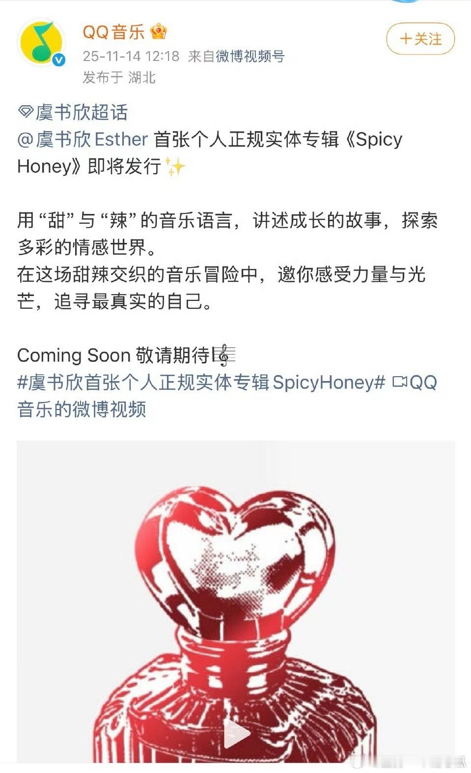 虞书欣也要发专辑了,首张个人正规实体专辑《Spicy Honey》