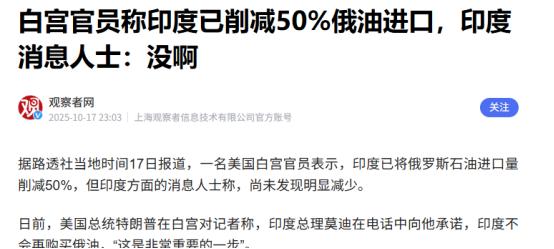 白宫:取消印度50%关税惩罚。   白宫凌晨突然放了个大招,直接把全球贸易圈给震醒了——针对印度的50%惩罚性关税,要取消了!   这个消息是白宫的卡罗琳在今天凌晨的例行记者会上亲口说的,她当着一群记者的面明明白白讲:“此前,由于印度对俄罗斯石油的采购我们对其采用了严格的关税惩罚,但是据我所知,他们现在已经大幅减少了俄罗斯石油进口,所以特朗普总统决定将取消对印度商品50%关税惩罚。”   这话一落地,不光记者们当场追问个不停,连印度那边的商界大佬们都连夜不睡,盯着消息刷新,毕竟这可是关乎真金白银的大事。   这事儿说起来,其实是一场打了好几个月的拉扯战,不是突然就拍板的。早几个月前,美国对俄罗斯各种施压,喊着让盟友和伙伴都别买俄罗斯石油,结果印度偏不怎么听劝。   要知道印度是全球第三大石油买家,之前从俄罗斯买的石油占比都飙到38%了,比俄乌冲突前的不到1%翻了几十倍,关键是买的价格还挺划算,等于间接帮了俄罗斯一把。   特朗普一看这情况就急了,觉得印度坏了自己的“大局”,直接挥起关税大棒,把对印度商品的关税从25%加码到50%,这惩罚力度可不是闹着玩的。   关税一加,印度那边立马就感受到疼了。最惨的是纺织业和钻石加工这些靠出口吃饭的行业,北方邦的纺织厂一家接一家关门,苏拉特的钻石作坊有1200多家直接凉了,工人们只能打包行李回家。   要知道美国市场可是吞了印度三分之一的海产品出口,关税一涨,印度的鱼虾运到美国货架上价格直接翻倍,没人买账,海产品堆在港口都发臭了。   坎普尔的皮革厂更倒霉,35%的工厂因为没订单倒闭,老板们愁得头发都白了。经济学家算了笔账,这波关税直接影响了印度550到600亿美元的出口货物,对靠出口拉动经济的印度来说,简直是往心窝子里捅了一刀。   印度也不是硬扛到底的性子,疼了自然就会转弯。从8月份开始,印度对俄罗斯石油的进口量就肉眼可见地往下掉,船舶追踪公司的数据显示,8月印度从俄罗斯进口的乌拉尔原油日均才40万桶,比之前的118万桶少了近三分之二。   最先服软的是印度最大的私企炼油商信实工业,直接叫停了从美国制裁的两家俄罗斯石油巨头进货,一天就少买近50万桶。紧接着三家国有炼油厂也跟上,明说不再直接进口受制裁的俄油,转头开始从中东和美国买油,这态度摆得明明白白。   其实印度不光是在石油上让步,军事上也给了美国不少甜头。就在上个月的东盟防长扩大会议上,印度国防部长和美国国防部长当场签了《美印十年期防务合作框架协议》,从导弹到无人机都要联合生产,还搞情报共享和联合军演,这可是把军事合作绑得死死的。   要知道这份协议刚好赶在中美防长会晤的敏感节点落地,明摆着是给美国递投名状。更巧的是,美国同月还给了印度恰巴哈尔港六个月的制裁豁免,这个港口是印度通往中亚的关键通道,之前一直被美国卡脖子,现在突然松口,明眼人都看得出是交换。   美国这边也有自己的小算盘,不是单纯看印度听话了就心软。特朗普一直想缩减和印度的贸易逆差,加关税本来就是想逼印度让步,现在印度既减了俄油进口又签了防务协议,正好顺坡下驴。   而且美国企业早就怨声载道了,印度是个大市场,加关税后美国产品在印度卖不动,不少企业都跑到白宫告状,现在取消部分关税,也能给国内企业一个交代。   更重要的是,美国想把印度绑在“印太战略”的战车上,对冲其他国家的影响力,关税这根大棒打够了,就得给点胡萝卜,不然把印度逼急了反而得不偿失。   不过这事儿也不是一劳永逸,双方心里都有小九九。印度虽然减了俄油进口,但也没完全断绝,只是换了种更隐蔽的方式,毕竟俄罗斯石油的低价诱惑实在太大。   莫迪心里清楚,不能完全倒向美国,不然自己的“大国梦”就成了泡影,之前婉拒的F-35战机采购现在又被提上日程,说白了就是用真金白银买安全保障。   美国那边也没把关税全取消,只是先放了50%,手里还攥着筹码,万一印度以后再不听话,这大棒随时还能挥起来。   现在最开心的莫过于印度的出口企业,纺织厂老板们已经开始联系美国采购商,钻石商也在琢磨着重新打开美国市场。   但经济学家也提了醒,这波关税取消顶多让印度经济喘口气,之前被拖累的GDP增速想补回来没那么容易,穆迪评级机构早说了,这波关税至少让印度2026财年的GDP增速少了0.5个百分点。   而且印度农民那边也可能闹意见,为了讨好美国,印度肯定要多买美国的农产品,本土农产品价格会受冲击,莫迪的票仓说不定会受影响。   说到底,这就是一场赤裸裸的利益交换,没有什么所谓的“盟友情深”。美国用关税逼印度就范,印度用石油采购和军事合作换市场,双方各取所需。