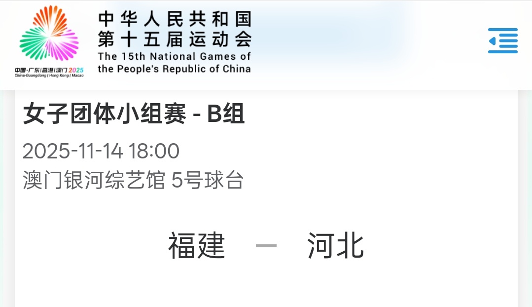 |第十五届全运会乒乓球女团小组赛⏰11月14日18:00五号球台河
