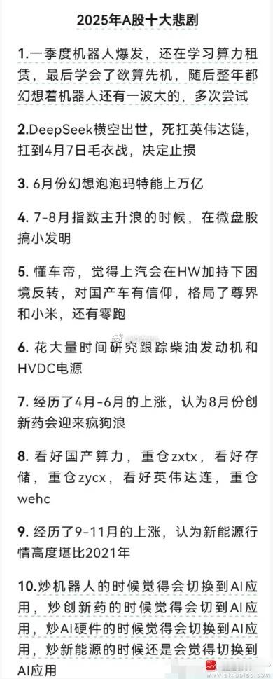 今天有人总结A股2025年十大悲剧,看很多人在转发!尤其最后一条最扎心。实话实话