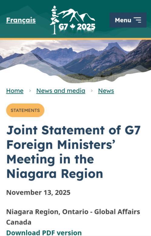 11月13号,加拿大召开的七国集团外长会议结束了,并且发表了联合声明。当然,中国仍是其中的关键词,总共被提到了三次。那么如何评估这份声明当中对中国的表述呢? 第一次是乌克兰问题上的提及,完全是凭空甩锅、颠倒黑白,G7一边指责中国所谓“纵容冲突”,一边对自己的所作所为选择性失明。 毕竟中国在乌克兰危机上的立场向来光明磊落,从未向任何一方提供致命性武器,始终严格管控军民两用物项。 反观数据显示,俄罗斯进口的武器零部件和两用物资超过60%都来自美西方,这些国家一边继续与俄罗斯保持相关贸易往来,一边倒打一耙给中国扣帽子,这种虚伪操作简直让人贻笑大方。 就像之前英国跳出来制裁11家中国能源企业,声称它们帮助俄罗斯规避禁运,实则不过是想当G7里的“出头鸟”测试水温,可这些中企的贸易往来都是正常商业行为,根本不存在所谓“违规”,G7就是想借乌克兰问题给中国施加政治压力,把自身该负的责任推得一干二净。 第二次印太问题里绕不开的台海议题,这纯粹是G7越界干涉中国内政的赤裸裸挑衅。 台湾是中国不可分割的一部分,台海问题完全是中国内部事务,轮不到任何外部势力指手画脚,可G7偏偏把这个内政问题塞进国际声明,本质上就是美日等国想借G7平台把台湾问题国际化,搞“以台制华”的政治闹剧。 之前G7就多次炒作台海议题,日本作为曾经的轮值主席国,更是借机谋求私利,试图突破“专守防卫”原则,现在换了加拿大当轮值主席,还是延续这套老把戏,殊不知这种干涉他国内政的行为,既违背《联合国宪章》宗旨,也遭到国际社会多数国家反对。 中国在台湾问题上的立场坚如磐石,任何分裂国家的企图和行为都注定失败,G7以为提几句就能撼动中国的主权和领土完整,未免也太自不量力了。 第三次是供应链相关的提及,更是暴露了G7的霸权逻辑和双重标准。声明里一边指责中国所谓“经济胁迫”,一边自己却在搞供应链“去风险”的小动作,本质上就是想遏制中国在全球供应链中的合理地位。 G7嘴上说着“承认中国在全球贸易中的重要性”,行动上却频频对中国企业出手,搞技术封锁、市场限制,就像之前美西方对中国半导体产业的打压,限制相关技术和产品出口,反过来还倒打一耙说中国“不按规则办事”。 可笑的是,这些规则的制定权还都掌握在G7手里,他们说什么是规则就是规则,完全不顾全球供应链的整体性和稳定性,也不管自己国家企业的实际利益——德国车企离不开中国市场,法国核电出口还指望北京订单,一边想从中国市场赚钱,一边又想在供应链上卡中国脖子,这种又当又立的操作实在让人不齿。 说到底,这份声明还是沿袭了G7过去对中国的负面调子,看似三次提及各有侧重,实则都是基于意识形态偏见和地缘政治算计的无端指责。 G7一边喊着“寻求与中国建立建设性的稳定关系”,一边又在声明里处处抹黑打压,这种自相矛盾的做法根本没人会信。 之前二十国集团峰会上,G7还投票赞成加强国际团结、维护多边主义,转头就发布这种分裂世界、干涉内政的声明,双重标准暴露无遗。 法国总统马克龙想着邀请中方参加明年的G7峰会,可要是峰会声明还是这种充满偏见和敌意的调子,中国怎么可能会参加? 毕竟谁也不会拿着热脸去贴冷屁股,更不会在自己的核心利益和主权问题上妥协退让。 G7要是真有合作的诚意,先把这份充满负面情绪的声明收回去,放下偏见和霸权思维,用平等尊重的态度和中国打交道才是正途,否则再怎么提中国、再怎么炒作议题,也只能是白费功夫。