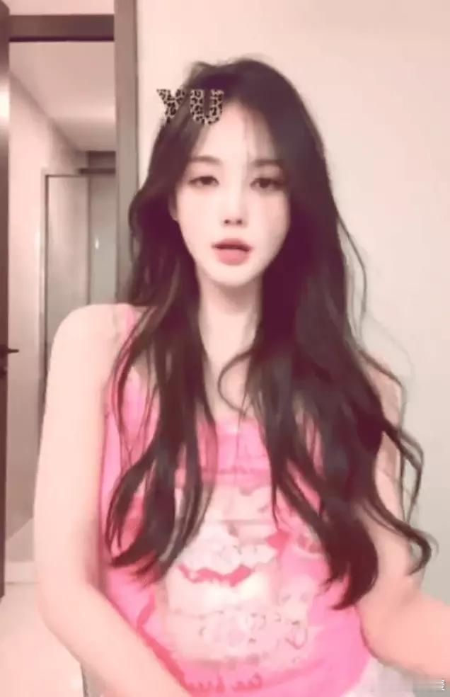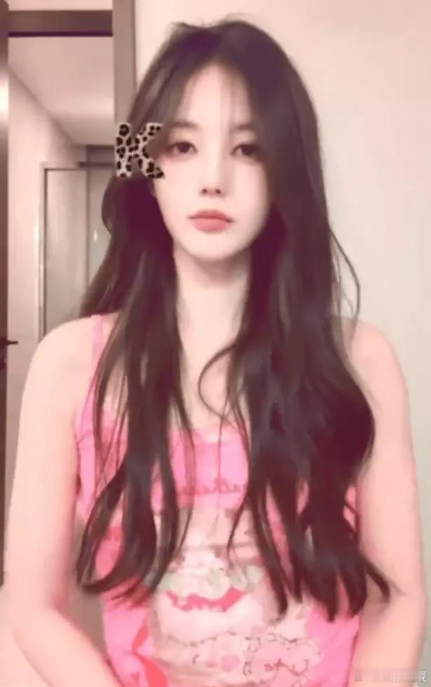 李一桐穿粉色吊带灵动俏皮 大眼圆圆嘟嘴超萌