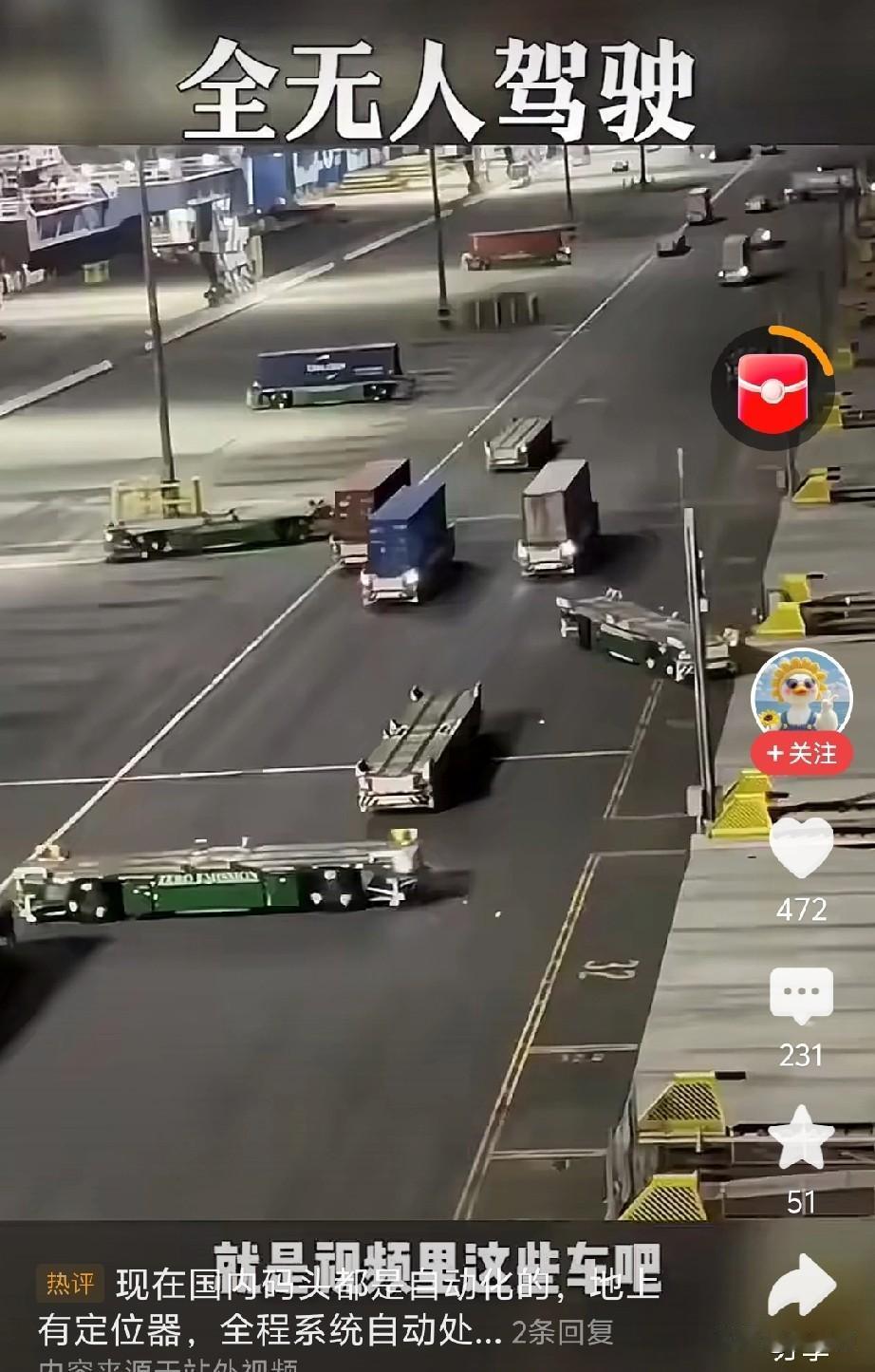 瞧瞧码头上的这些无人货车,不论大小,皆实现了无人驾驶,集装箱转运无需大车司机了。