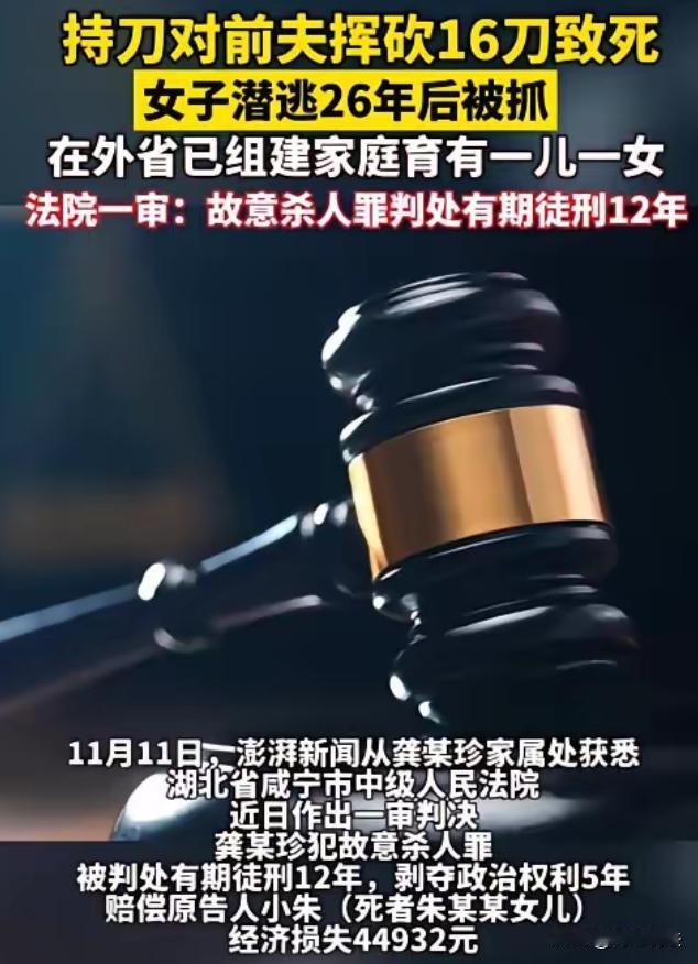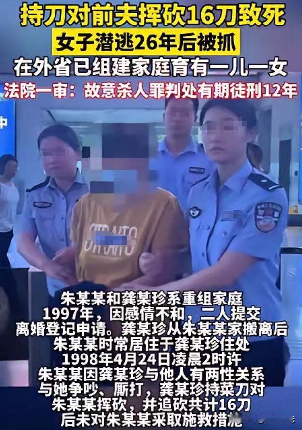 湖北咸宁,一男子离婚后还和前妻同居,竟撞见前妻与别的男人在家发生关系。男子怒不可遏,多次到前妻工作单位闹事还殴打前妻,前妻忍无可忍决心报复,趁男子不注意,抽出枕头下菜刀连砍16刀致其死亡,随后隐姓埋名26年,被抓时她已成家,还当上了村干部。面对控诉,她竟称是正当防卫。 朱某有过两段婚姻,都以失败告终,后来和龚某重组家庭,可婚后两人常因各种琐事争吵不断,感情在争吵中一点点消磨,最终还是离了婚。 离婚后朱某心里放不下龚某,总想着挽回这段感情,便经常去龚某住处找她,有一回,他去的时候,撞见龚某带着新男子回家约会,两人还发生了关系。 这场景让朱某怒火瞬间冲上脑门,他觉得龚某背叛了自己,从此便对龚某怀恨在心。 之后,朱某多次跑到龚某的工作单位去闹事,还在单位里对龚某动手殴打。 龚某被朱某这么一闹,工作和生活都受到了极大的影响,对朱某的怨恨也日益加深,她觉得朱某这样纠缠不休,自己的生活完全没了安宁。 这天凌晨2点,朱某又来到龚某住处,两人再次发生激烈争吵,争吵中,朱某情绪激动,直接掐住了龚某的脖子,龚某感觉呼吸越来越困难,求生的本能让她拼命挣扎。 龚某之前就因为朱某的种种行为,心里有了防备,在枕头下提前藏了一把菜刀,此刻被朱某掐住脖子,她毫不犹豫地抽出菜刀,朝着朱某砍去。 朱某没想到龚某会有这样的举动,被砍了几刀后,身体开始失去力气,龚某看着倒在血里的朱某,来不及多想,便匆匆逃离了现场。 这一逃就是26年,龚某隐姓埋名,换了身份重新生活。在这26年里,她重新组建了家庭,还有了儿女,凭借自己的努力,还当上了村干部。 龚某最终还是被警方抓获,被抓时,她已经不再是当年那个冲动的女子,但面对警方的询问,她坚称自己砍杀朱某是正当防卫。 龚某觉得,朱某长期对她进行骚扰和殴打,那天晚上还掐她脖子,她是为了保护自己的生命安全才动手的,属于正当防卫,不应该承担这么重的责任。 龚某的行为是否属于正当防卫? 根据《刑法》第二十条,正当防卫需满足不法侵害正在进行、针对不法侵害人、未明显超过必要限度三个条件。 龚某案中,朱某掐脖子行为确实构成不法侵害,龚某反抗行为本身符合正当防卫的起因条件。但关键在于防卫限度。 龚某提前在枕头下藏菜刀,这一行为已超出正常防卫准备范畴。 根据司法实践,防卫工具的选择应与侵害程度相适应,龚某选择菜刀这一致命性工具,表明其主观上对可能造成严重后果存在放任态度。 朱某掐脖子行为虽危及生命,但龚某砍出16刀的行为明显超出制止侵害的必要。 从现场情况看,朱某被砍数刀后已失去反抗能力,龚某继续砍杀的行为已转化为故意伤害。 根据刑法第二十条第三款,防卫过当应当负刑事责任,但应当减轻或免除处罚。 龚某砍杀后未采取任何救助措施,反而逃离现场,导致朱某因失血过多死亡。 这表明龚某对朱某的死亡结果持间接故意心态,与正当防卫中防卫人应尽的救助义务相违背。 朱某的家属认为,龚某的行为就是故意杀人,朱某虽然有过错,但罪不至死,龚某砍了16刀,明显是想要朱某的命。 认定龚某构成故意杀人罪,主要基于三点:一是防卫工具选择不当,二是砍杀次数远超必要限度,三是事后逃避救助义务。 这些行为共同构成故意杀人罪的构成要件,而非正当防卫。 经过调查和审理,最终认定龚某的行为构成故意杀人罪。 虽然朱某在案发前有对龚某进行骚扰和殴打的行为,但龚某砍杀朱某的行为超出了正当防卫的必要限度。 最终判决,龚某因故意杀人罪被判处有期徒刑12年,赔偿朱某家属44932元。