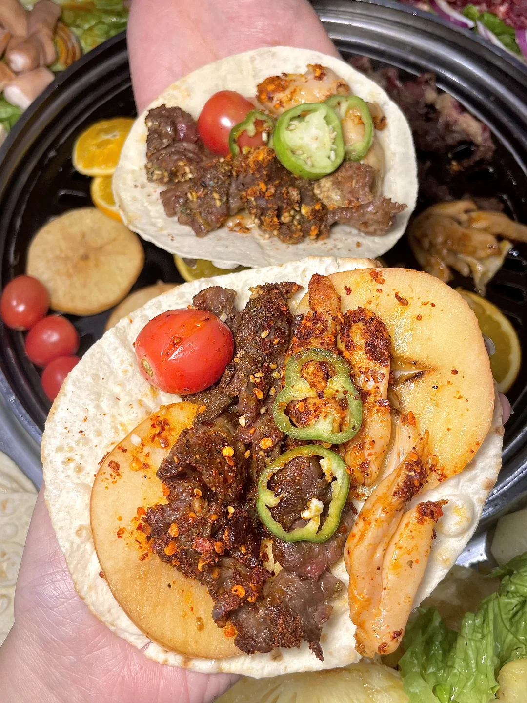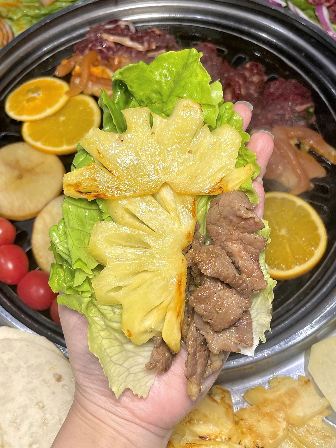 我的穷鬼快乐小食堂🥹 人均50就吃好吃饱! 肉肉都是明档鲜切,肉眼可见的新鲜!! 而且还解锁了烤肉新吃法,搭配橘子、苹果,菠萝一起吃,更清爽不腻!!