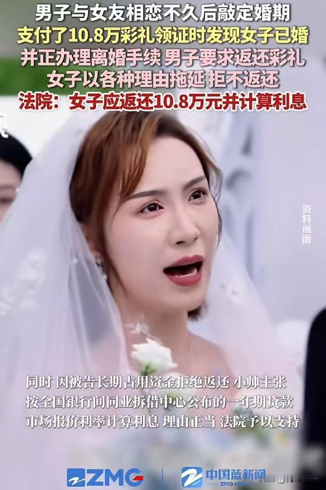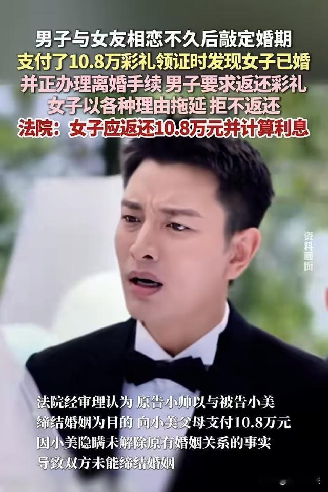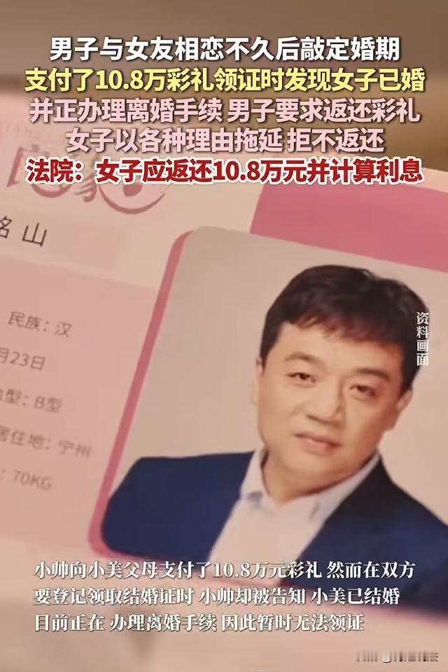 广东韶关,小帅经人介绍和小美恋爱,并向小美及其父母支付彩礼10.8万,可就在小帅打算和小美领证时被告知,小美已婚但离婚证还没办下来。小帅又羞又气,要求小美返还彩礼,可谁知,小美说这些钱拿来办离婚和还债了,现在还不了。 据中国蓝新闻,西安晚报等报道,去年4月份,小帅经人介绍认识了女子小美。 小帅和小美相恋后,觉得小美长相符合自己的审美,性格也不错,没几天两人就确定了恋爱关系。 小帅的亲属一直为他的婚事发愁,得知儿子相亲成功,就火急火燎催促他结婚。 小帅自己也着急结婚,所以确定恋爱关系没多久,他就向小美求婚了。 小美同意了,两人敲定了结婚日期,眼看快要到日子了,小帅就多次和小美商量,想先把结婚证领了。 小美推三阻四的,证一直没能领得成,小帅逼得急,小美就和他约定了一个日子。 可到了约定领证的时间,小美还是找借口不去领证。 小帅急了,再三逼问下小美才说出实情,原来,小美早就结婚了。 小美说她现在正在办离婚,证还没下来,所以没办法和小帅结婚。 小美还说,让小帅再等她一等,等离婚证一办下来就和他结婚。 小帅一直以为小美没结过婚,这个消息对他打击非常大,也让他对小美失去了最基础的信任。 于是,小帅思考之后决定和小美退婚,并要求她退回10.8万元的彩礼。 可小美嘴上答应着,却一直没有行动,小帅再三讨要,小美一会说这些钱拿来还债了,一会说用来离婚了,一会又说用于家庭开支了。 总之,小美就一句话,钱已经花完了,她没有钱还。 小帅多次讨要无果,将小美及其父母起诉,要求他们返还全部彩礼10.8万元并支付利息。 那么,男女恋爱中,一方给予另一方的彩礼甚情况下能要回来?小帅能否要回彩礼呢? 一、彩礼返还的法律依据。 《最高法关于适用〈民法典〉婚姻家庭编的解释(一)》第五条规定:当事人请求返还按照习俗给付的彩礼的,如果查明属于以下情形,人民法院应当予以支持: (一)双方未办理结婚登记手续; (二)双方办理结婚登记手续但确未共同生活; (三)婚前给付并导致给付人生活困难。 适用前款第二项、第三项的规定,应当以双方离婚为条件。 小帅和小美并未办理结婚登记手续,完全符合上述法律规定中的第一种情形。 小帅以与小美缔结婚姻为目的,向小美及其父母支付了10.8万元彩礼,然而由于小美隐瞒了自己尚未解除原有婚姻关系一事,致使两人无法办理结婚登记,婚姻关系未能缔结。 因此,从法律层面来看,小帅要求返还彩礼的诉求具有明确的法律依据,小美应当返还彩礼。 二、小美以彩礼已花完为由拒绝返还的抗辩是否成立? 小美声称彩礼已用于办离婚、还债和家庭开支,所以没钱返还,这种抗辩在法律上是难以成立的。 首先,彩礼的给付是基于缔结婚姻的特定目的,当这一目的无法实现时,接受彩礼的一方就失去了继续占有彩礼的合法依据。 其次,小美对彩礼的使用情况并不能成为其拒绝返还的合理理由。即使彩礼已经被使用,也不能改变其应当返还的法律责任。 三、小帅主张利息是否应该得到支持? 《民法典》第四百六十条规定:不动产或者动产被占有人占有的,权利人可以请求返还原物及其孳息。 本案中,彩礼属于小帅的财产,小美及其父母在小帅要求返还彩礼后,长期占用该资金拒绝返还,这种行为构成了不当占有。 利息可以被视为彩礼资金在被不当占有期间所产生的孳息。 小美及其父母长期占用彩礼资金,使得小帅遭受了资金被占用的损失,按照法律规定,他们应当返还彩礼本金的同时支付相应的利息,以弥补小帅的损失。 因此,小帅主张利息的诉求是合理合法的。 最终,经审理认为,小美和小帅未能缔结婚姻关系,应返还小帅10.8万元彩礼,及相应利息。