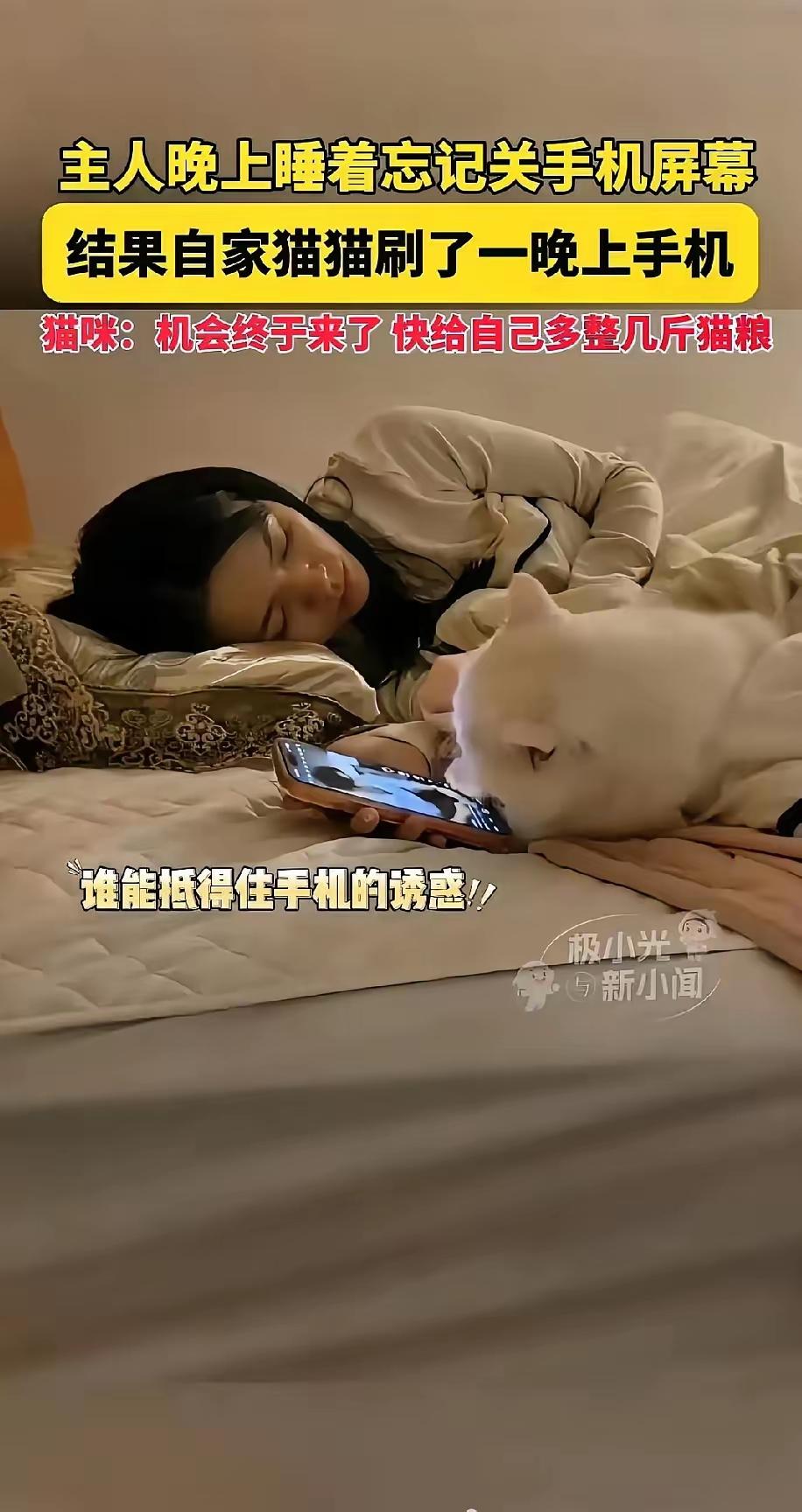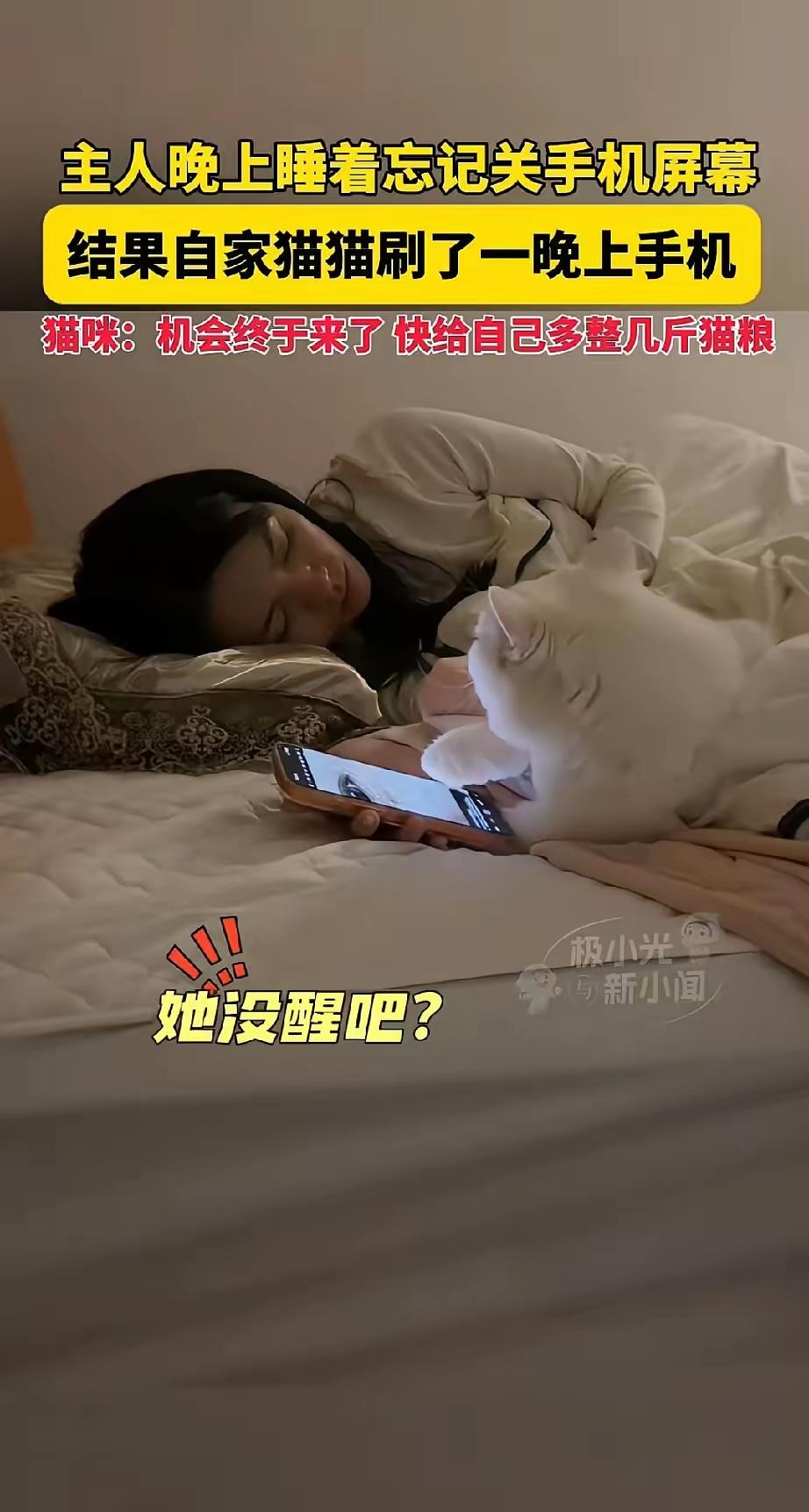 猫🐱咪偷刷手机到关机,那心虚样笑死人! 我刷到直接忍不住笑了!陈女士睡着忘关手机,她家猫咪悄咪咪爬上床,粉嫩肉垫在屏幕上划来划去,刷得比我还顺手! 见着小鱼干视频就凑上去盯半天,每刷两下就猛地抬头,耳朵竖得笔直瞄主人,手机晃一下直接僵住,尾巴贴紧身子不敢喘大气,那做贼模样跟小孩偷玩没两样! 整整刷到手机没电,这猫也太有灵性了!动物的小聪明藏着对主人的模仿,这份偷偷摸摸的可爱,真让人越看越喜欢太萌了,像个老用户[笑]