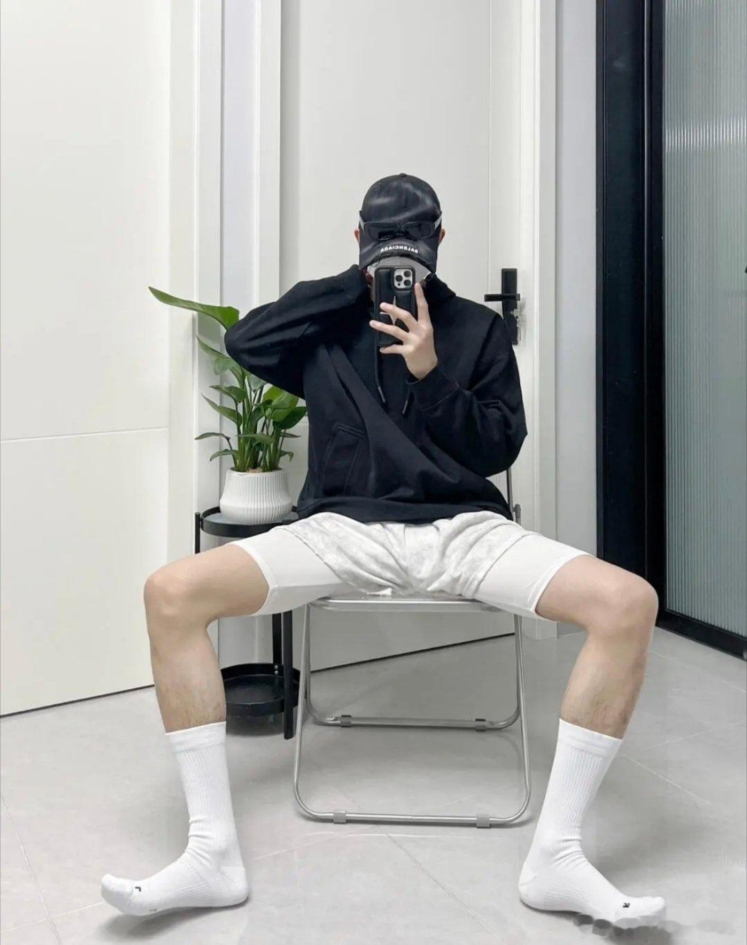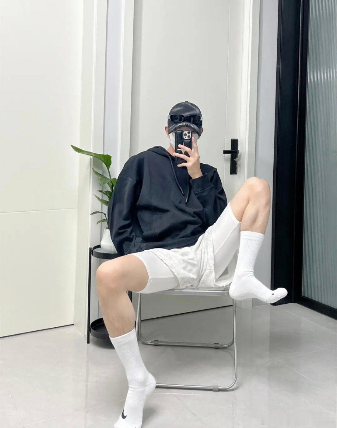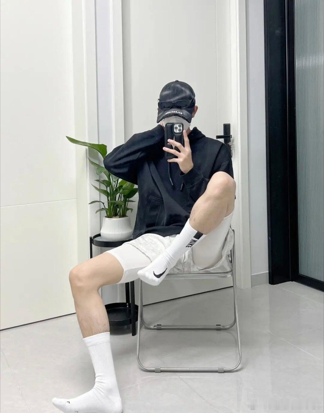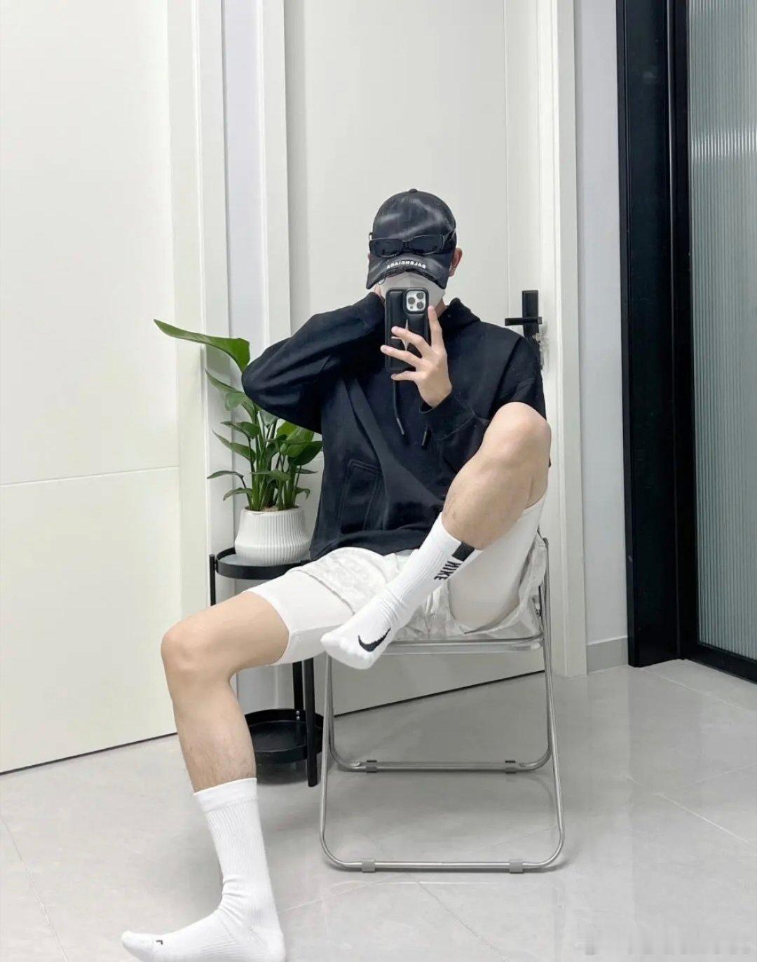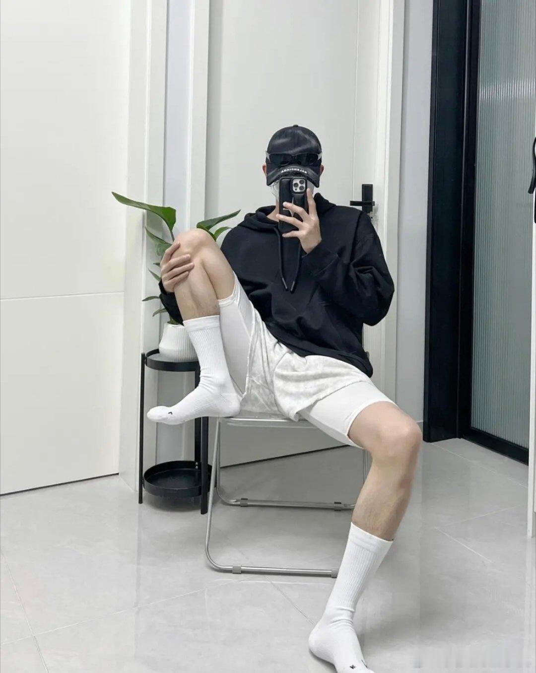 黑白极简风|oversize 卫衣与运动短裤的慵懒叠穿,以黑调连帽卫衣的松弛感,碰撞白系运动短裤与长袜的利落,在极简空间里演绎随性又不失型格的日常穿搭,每一个姿态都藏着对舒适与潮流的双重表达。黑白配 oversize 卫衣 日常穿搭 潮流叠穿