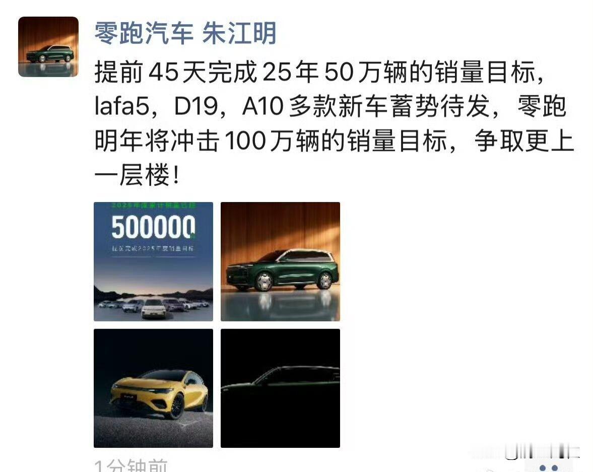零跑太牛了!明年这100万要从哪家嘴里挖出来啊,100万销量可以进全国前五品牌了。