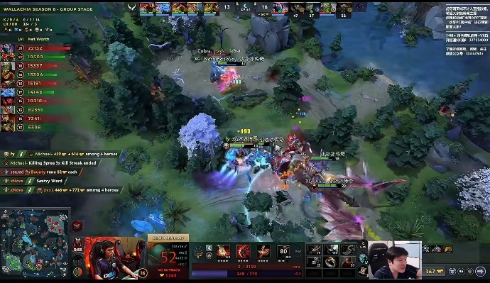 [48分钟]双方四代肉山团战,NTS帕克被先手羊加投掷击杀,帕克买活参战,正面Ame龙骑士变龙再次刚住了正面,尽管DarkMago小小买活过来将龙骑士丢树林卡主,Parker圣堂拿出圣剑输出,但龙骑士变龙跳出来晕住圣堂输出,圣堂自知不敌后撤,龙骑士将Peru剩余四人击杀。