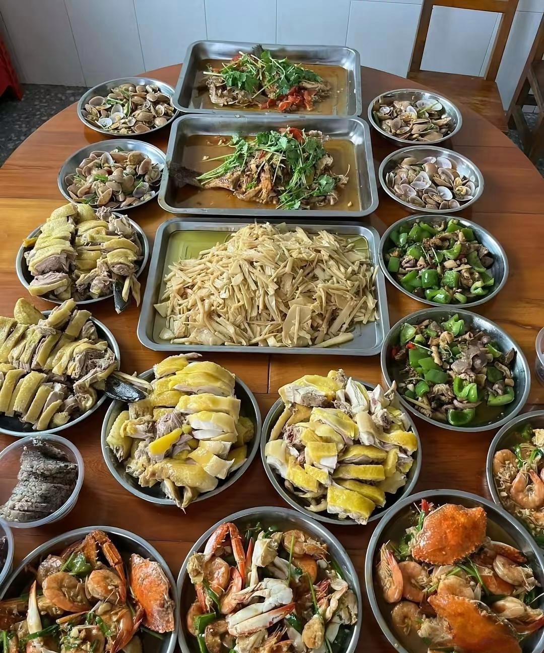 来亲戚家做客,做这一桌子的菜,也吃不完呀,临走的时候得带回家点[耶]