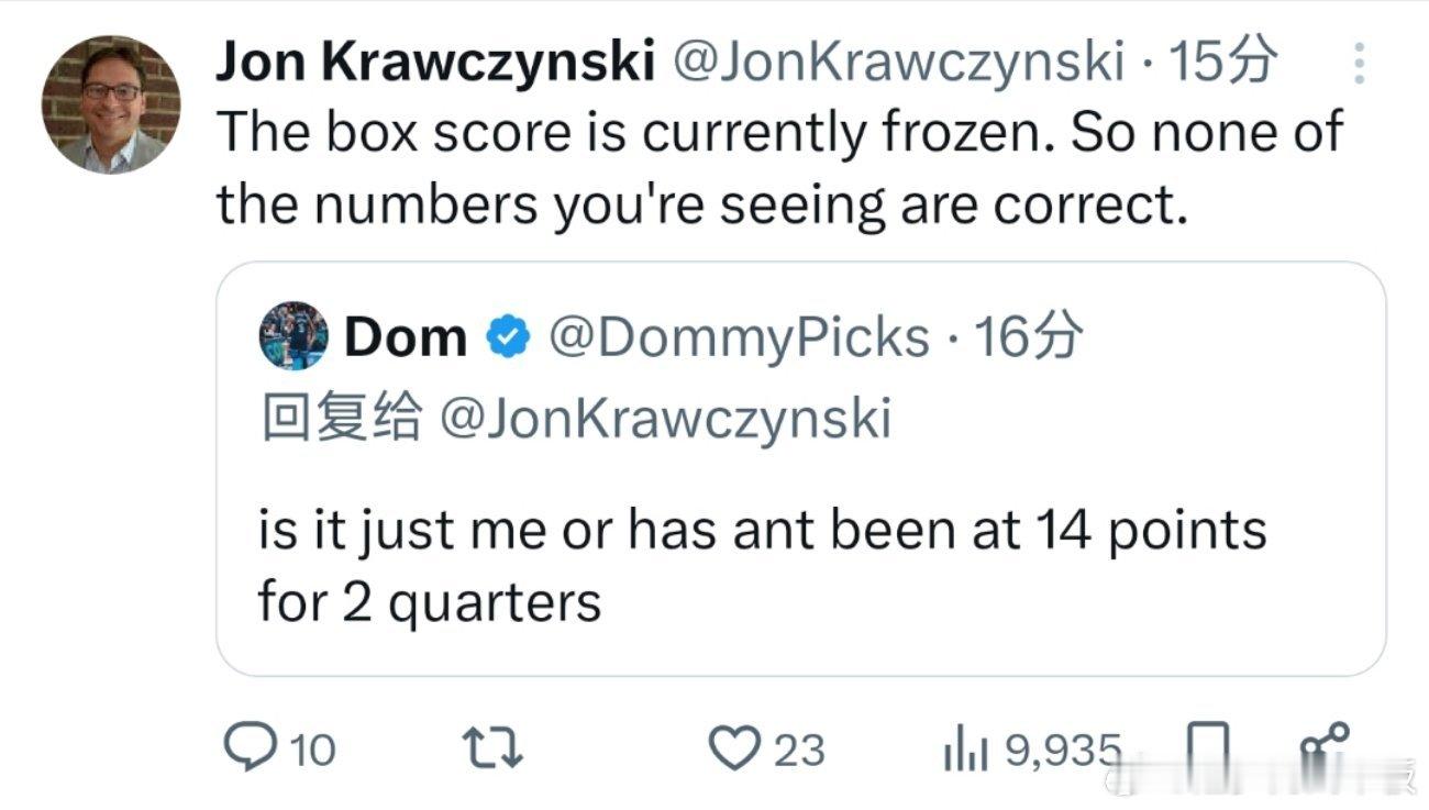 少见!森林狼队记称,今日掘金vs森林狼的数据源目前处于瘫痪状态,目前显示所有的数据统计都是不准确的,后台正在修复中😳掘金客场123-112战胜森林狼,但目前官网的数据仍停留在第三节