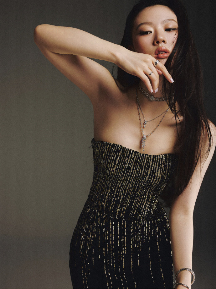 刘亦菲把死亡玫粉穿出了定制款的感觉,这种颜色普通人穿上分分钟黑三度,她居然能穿出