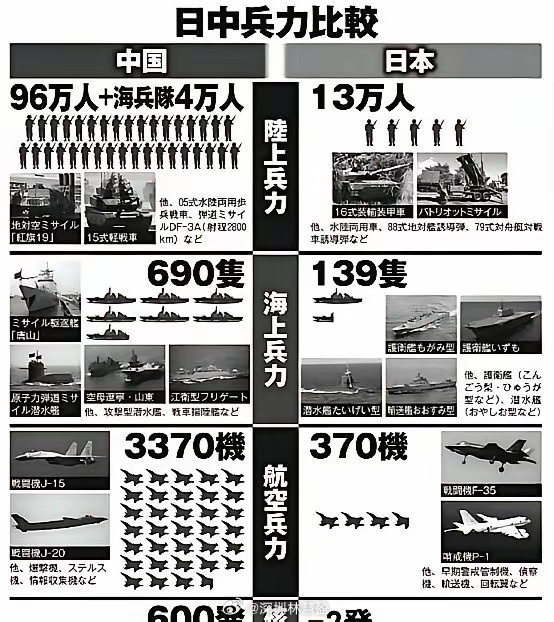 小日子网民也是挺有意思的!第一张图片是中日兵力对比图,这个核武器-2发简直精髓,笑死人了,日本网友也是会玩梗的。第二张图片应该是日本极右翼女权做的吧,这一拳也是直接就打在了首相脸上了。两张图片也反映出日本网民不同的观点,对此你怎么看?