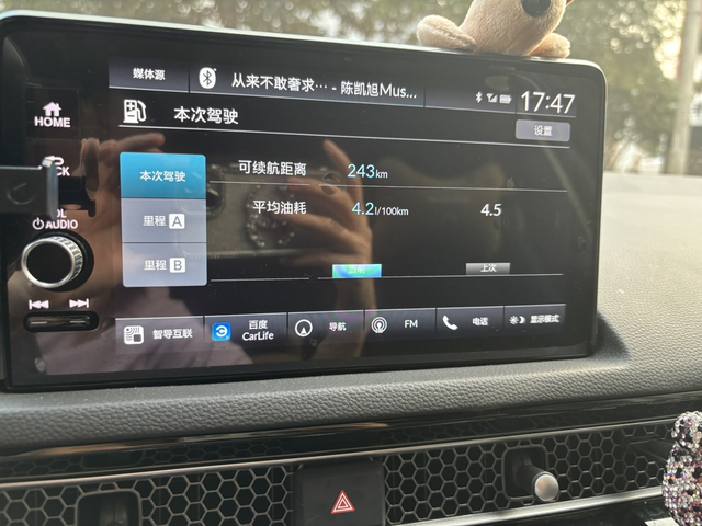 给你们看看我的油耗 昨晚下班回家,全程六十公里,市区加国道是4.5,今天从家到公司是4.2,全程五十六公里,国道,以前我都是差不多四百多公里的时候加油,这次我想看看到底满箱油能跑多少公里,现在基本是750,在跑跑应该能到七百五十多,到今天提车正好半年,总里程四千六百多,综合油耗6.4,你们呢