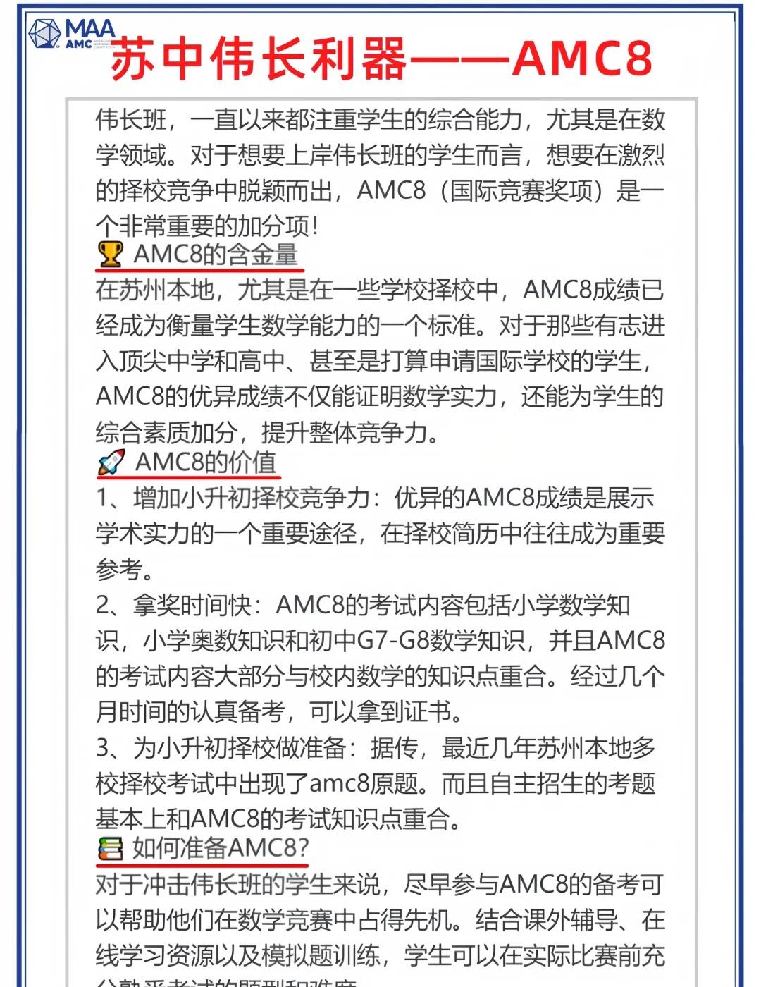 苏中伟长班利器—伟长班 苏州择校 苏州小升初 AMC8 数学竞赛