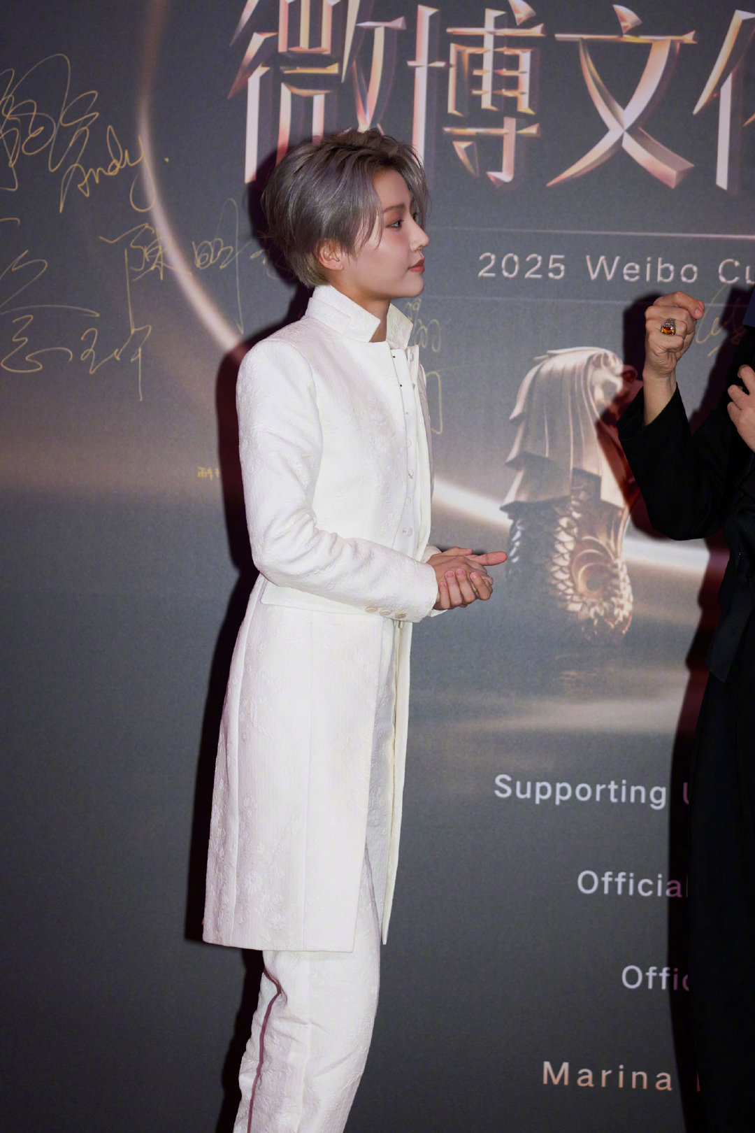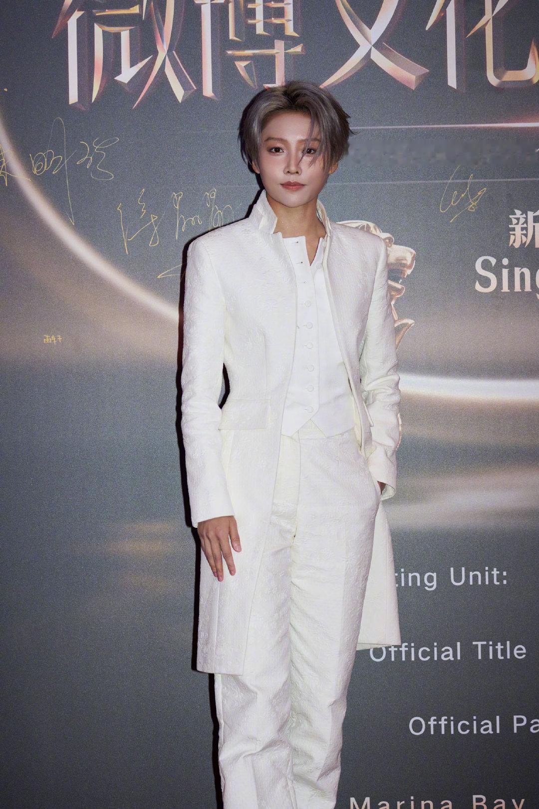 新加坡站文化交流之夜的优雅担当非刘雨昕莫属!白色造型自带强大气场,长款外套加分不