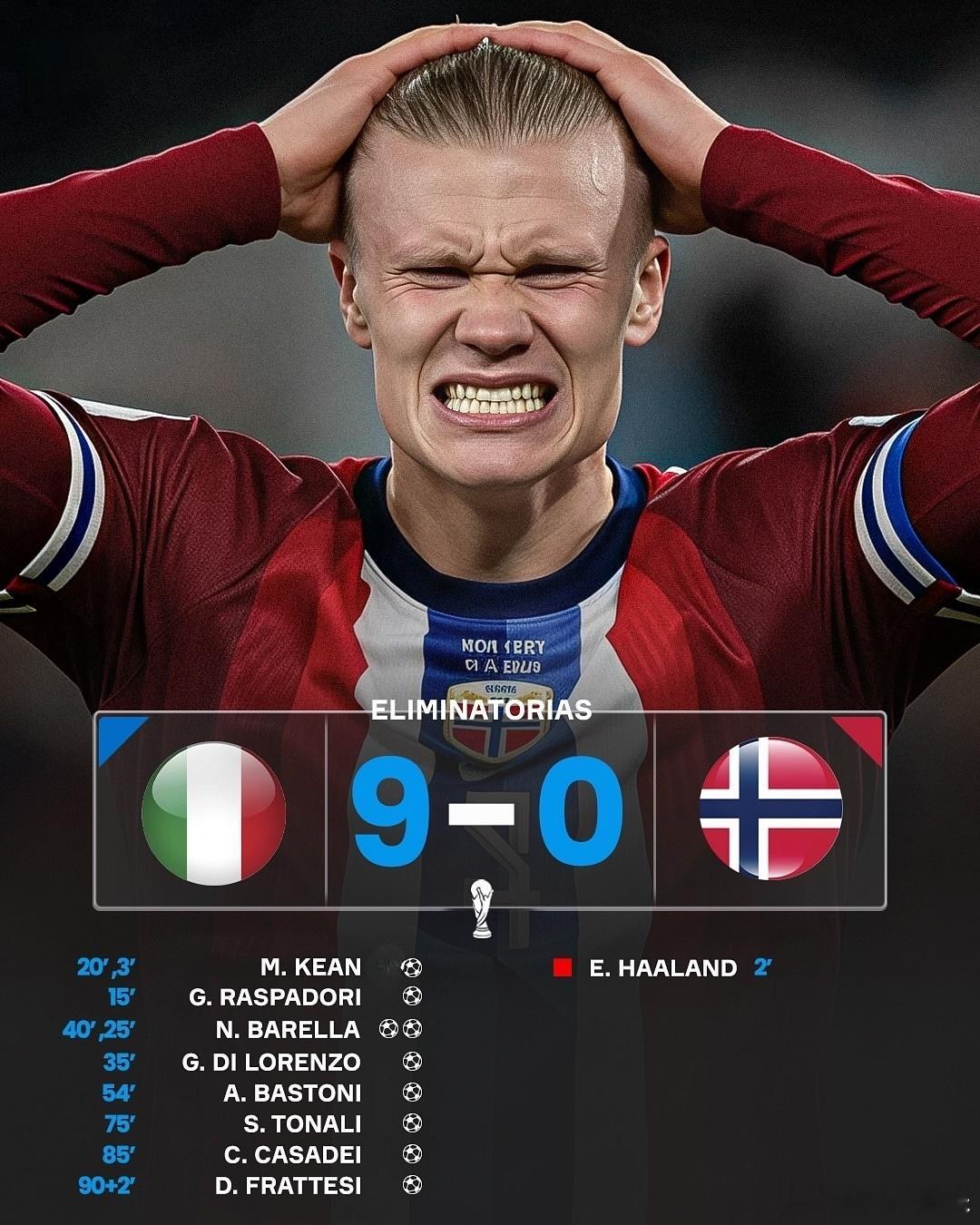 意大利球迷太强了,比赛结果的图片已经做好了,最牛的是哈兰德开场就被罚下。