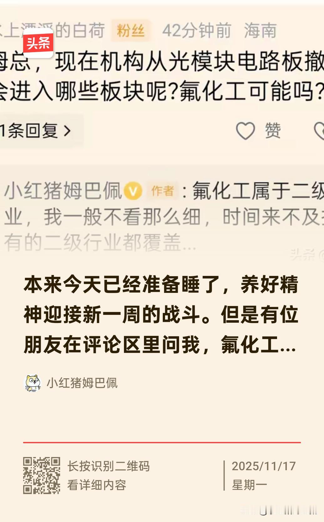 再和大家补充一下六氟磷酸锂和氟化工的一些逻辑。 之前说过六氟磷酸锂是制造锂电池电解液的核心材料,本轮上升的主要原因是产能不足,需求爆发后导致价格飙升。如果不考虑短期操作,想要长期投资的话,还是要考虑一下这个行业的长期逻辑。 聪明的朋友可能看到电解液三个字,立马会反应过来另四个字:固态电池。没错,固态电池就没有电解液,虽然有电解质但是是固态的,也就是说固态电池的研发成果和六氟磷酸锂产业基本是反向关系。由于这些产业中最新技术的进展对于普通投资者而言太过于不好跟踪和判断(对我而言也是,机构都要专业的化工和新能源或电力设备研究员来看),所以我昨晚还是建议大家不用挖掘太细分的机会,考虑通吃产业红利的公司。