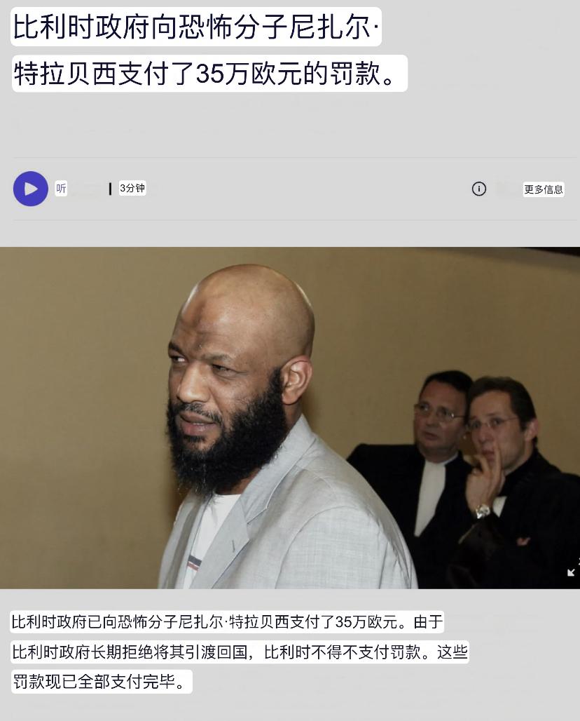 比利时政府为何支付给一名“恐怖分子”35万欧元?嫌疑人没有合法居留身份,却为何又能留在比利时和家人团聚?比利时政府为何对此束手无策?我们一起来解开这些谜团。 尼扎尔·特拉贝西Nizar Trabelsi,一名在比利时定居的突尼斯移民,计划对美国Kleine-Brogel空军基地和布鲁塞尔美国大使馆发动恐怖袭击。 他在实施前被捕。不久后,发现比利时还有其他14名基地组织恐怖分子计划用重武器和炸药营救监狱中的Trabelsi。 简而言之,美国要求引渡Trabelsi,因为他计划袭击美国人员。Trabelsi最终于2013年被引渡到美国,但左翼NGO和人权组织在法庭上强烈反对引渡,欧洲人权法院(ECHR)也介入,认为引渡可能违反《欧洲人权公约》,因为美国可能判处“不可减刑的无期徒刑”,这被视为“不人道待遇”。 比利时最初无视欧洲人权法院的临时禁令,仍将他引渡。在美国的审判中,他于2023年被联邦陪审团宣判部分罪名无罪,但他已在比利时服过10年刑。之后,比利时法院多次判决引渡违法,要求美国将其遣返,并对比利时政府拖延执行判决处以每日罚款。 2025年8月,Trabelsi终于被遣返回比利时,10月被释放,目前无合法居留身份,但有因为人道原因不能被驱逐。 2025年11月14日有消息曝光:比利时政府已向Trabelsi支付约35万欧元,其中约30万为拖延遣返的累计罚款,另加约5万诉讼费用。 早在2014年,欧洲人权法院已经判处比利时支付Trabelsi 9万欧元,6万道德损害 + 3万诉讼费。 Nizar Trabelsi案件完整时间线: 2001年9月13日:9·11袭击后两天,Trabelsi在布鲁塞尔被捕。他是前德国职业足球员,转为基地组织成员,计划自杀式炸弹袭击比利时Kleine-Brogel空军基地。 2003-2004年:比利时法院判处他10年监禁,罪名包括恐怖阴谋、非法持械、加入私人武装。他服满刑期。 2013年:比利时不顾欧洲人权法院临时禁令,将他引渡美国。美国指控他与本·拉登会面、参与更大阴谋。 2014年:欧洲人权法院判决比利时引渡违法。违反《欧洲人权公约》第3条禁止不人道待遇,判比利时支付Trabelsi 9万欧元(6万损害赔偿 + 3万诉讼费)。 2022年:布鲁塞尔上诉法院追加判决,比利时须支付约10万欧元,在美国监禁每年1万欧元。 2023年7月:美国联邦陪审团判他部分恐怖阴谋罪无罪,但他已在美关押近10年,其中大部分单独囚禁。 2023-2025年:被判部分无罪后,美国移民局仍拘留他,视为非法移民。美国公民自由联盟起诉美国违法拘留。比利时法院多次判决“引渡非法,必须遣返”,并对政府拖延处以每日1-1.5万欧元罚款。 2025年8月:Trabelsi被遣返回比利时。 2025年10月:比利时最高法院确认释放他。目前他人身自由但无合法居留证,而且因为有所谓的人权风险而无法被驱逐。 2025年11月13-14日最新消息:比利时政府已支付Trabelsi 35万欧元。约30万为拖延遣返的强制罚款(每日罚款累积至上限),另5万为额外诉讼费。 Trabelsi律师称:“国家欠他太多——非法引渡、在美恶劣拘留条件、最终无罪。” 目前Trabelsi在比利时无法被进一步监禁或驱逐,他本人已经在比利时与妻子儿女团聚。比利时政府对此“束手无策”。 欧洲右翼媒体称“比利时奖励恐怖分子35万欧元”,把法院对政府的罚款支付给Trabelsi。 这个案子在比利时引发巨大争议,被视为“欧洲人权司法 vs. 反恐安全”的典型冲突。 与此同时,西欧的司法系统对在社交平台发布“种族主义”言论的本地青少年进行重判,却对来自其他国家的非法移民和恐怖分子如此“宽容”。