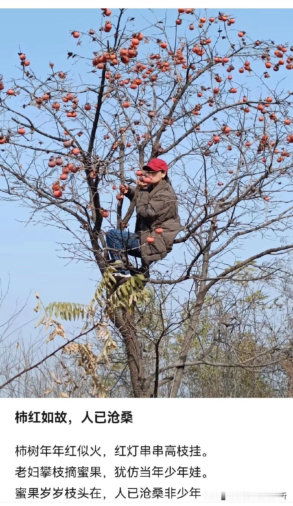 爬树摘柿人再也不是那个少年了,还换成女性了