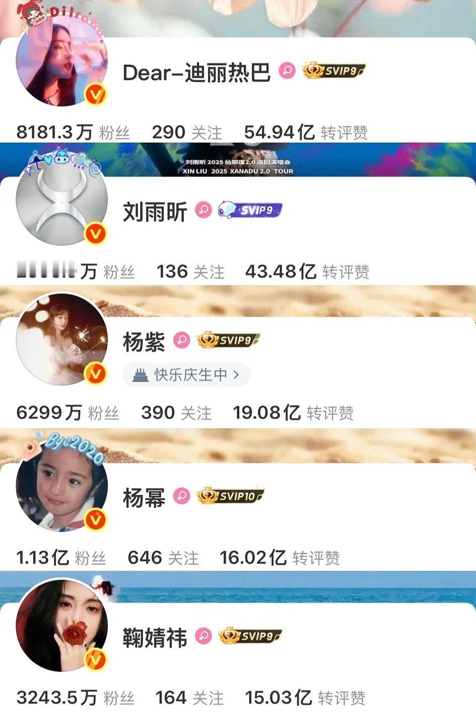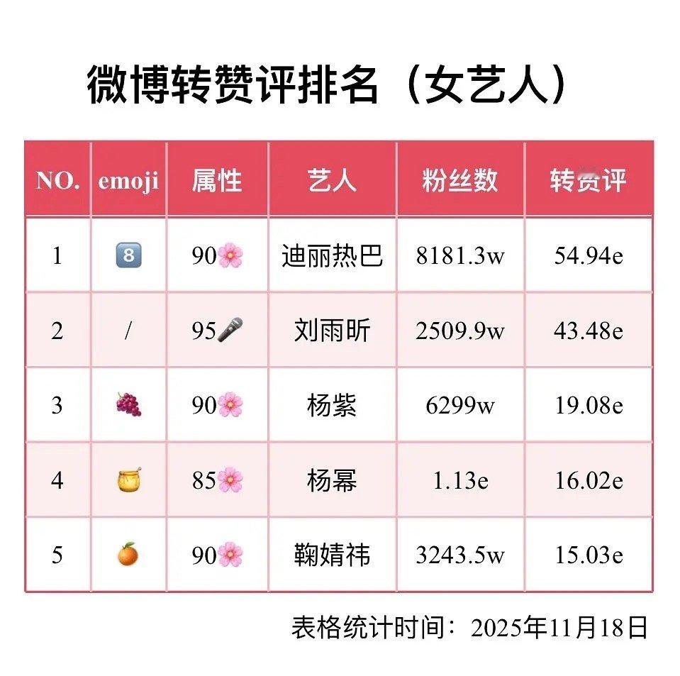 内娱男女艺人微博转评赞排名