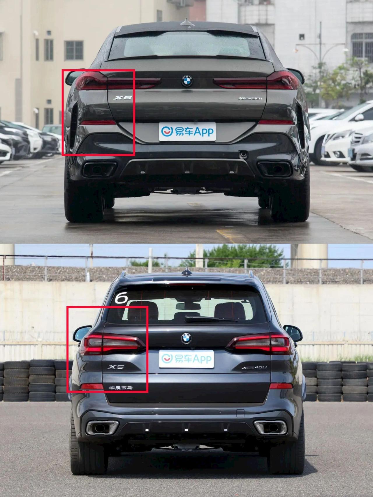 相差20w的宝马的X5和X6有什么区别? 说到宝马SUV,我就会想到其比较受欢迎的X6和X5,虽然他们两者看上去有一些相似,但细看的话还是会有区别。我们今天就来一起研究研究,看看它们在设计中,有什么区别? 外观设计的不同 X6整体造型更加接近宝马旗舰性能SUV XM车型,延续了以往的风格,保持了宝马一贯的精致感与运动感。 X5前脸采用了标志性的双肾进气格栅,再配以银色镀铬装饰的中网设计,让其有着不错的档次感和辨识度。 内饰风格的不同 X6看上去颇具高贵的感觉,处处透露着高级感,一坐进车内就能感受到不一般的格调。 X5中控台略微向驾驶员倾斜,更方便驾驶员操作。中控布局也很规整,做工比较精细。 车身尺寸的不同 X6的车身长宽高为4947mm*2004mm*1698mm,轴距为2975mm。 X5的车身长宽高为5060mm*2004mm*1779mm,轴距为2975mm,车身更长。 总体上来讲,我觉得X6和X5各有优势,两者的市场定位都是高端豪华SUV,如果您更看重空间和功能,宝马X5可能更合适。如果您更看重外观和动力,宝马X6可能更有吸引力。