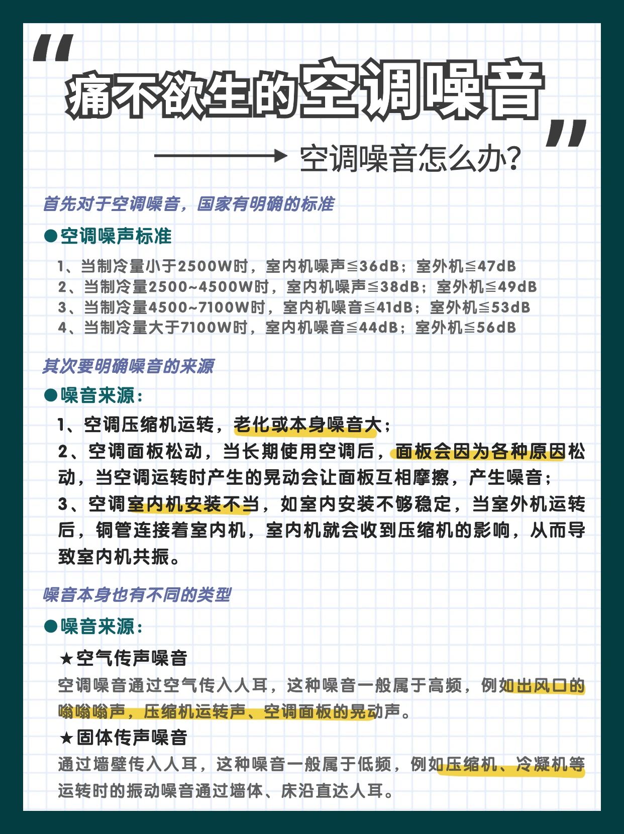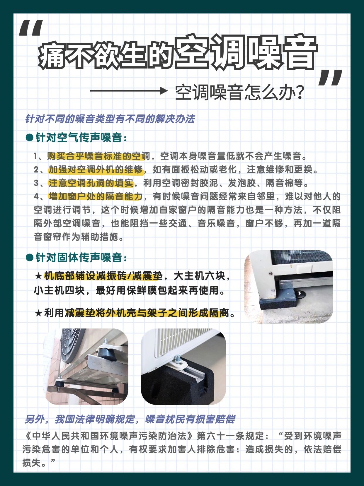 1、购买合乎噪音标准的空调,空调本身噪音量低就不会产生噪音。
