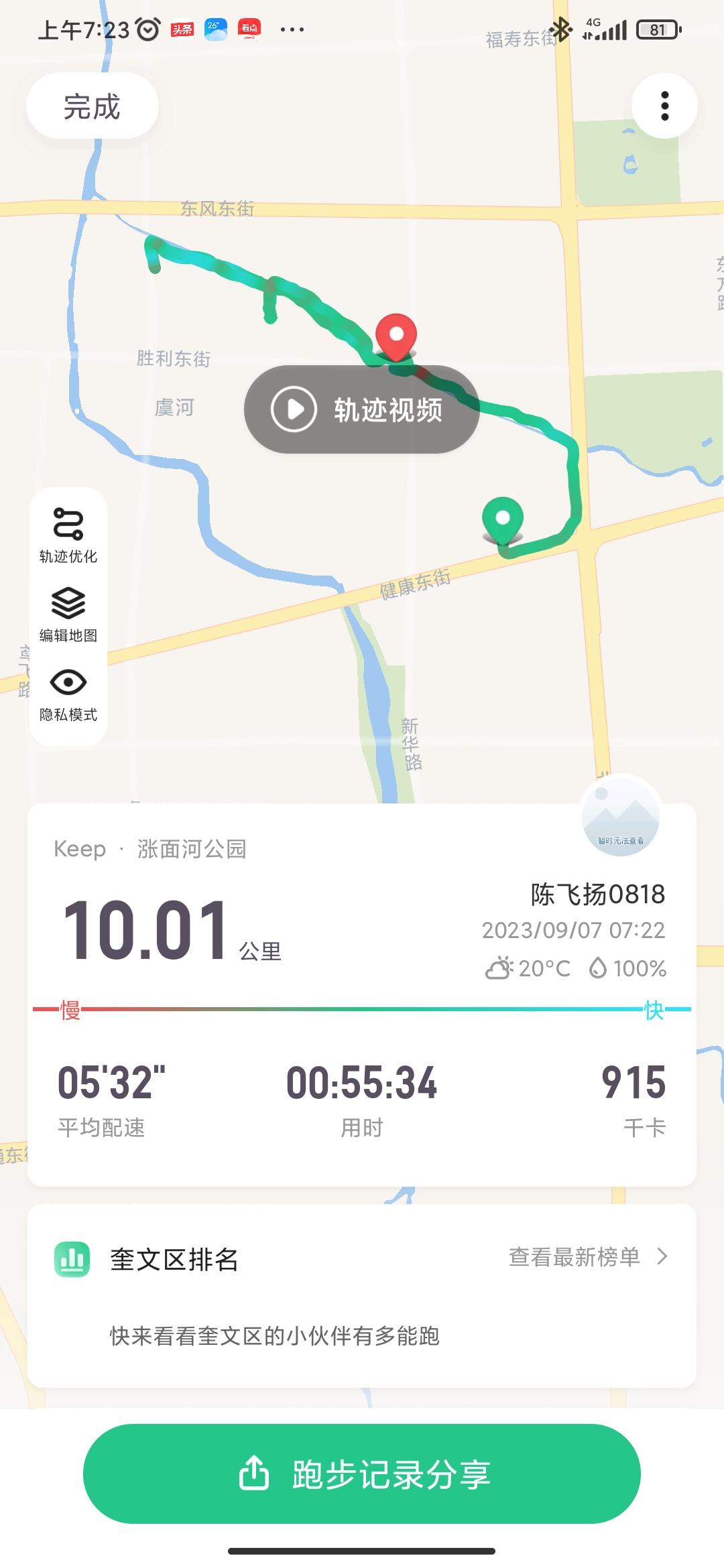经过一个夏天,配速提上来了,稳住,10.15半马两小时见!