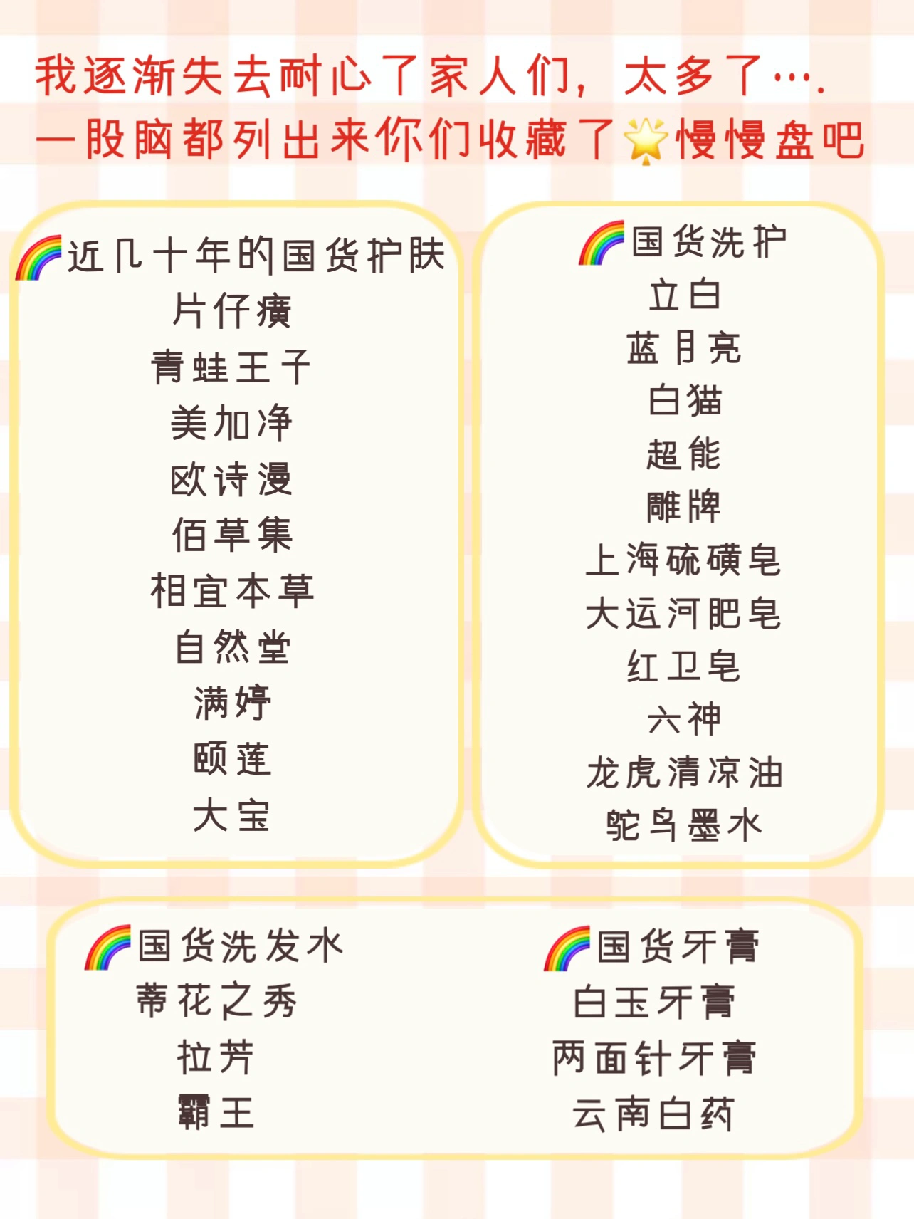有宝子说,能不能把老牌国货列个表,咱们年轻人打算,挨个去买