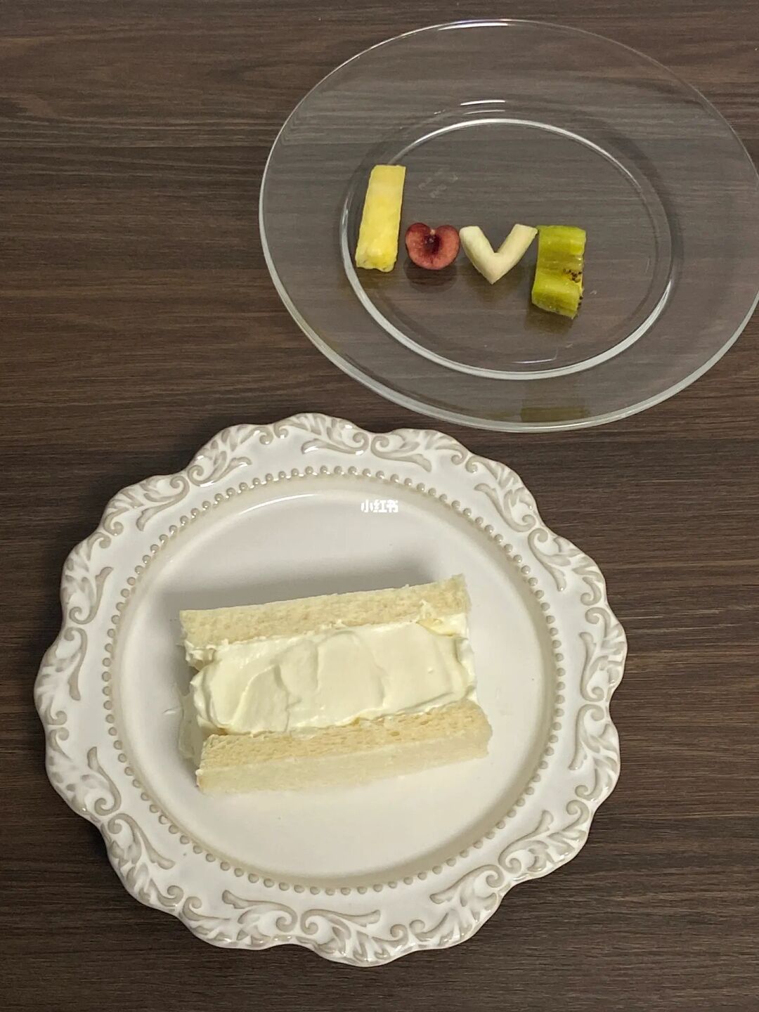 love💗小面包第二弹! 用的是菠萝🍍、车厘子🍒、桃子🍑、猕猴桃🥝 两种方法,第一种从中切开的话,奶油容易漏到边上,要包好保鲜膜,感觉效果没那么好就没拍啦 第二种最简单,直接把水果铺上即可,奶油打发好是固体的,先涂在面包夹层中,再铺上水果,填满缝隙即可