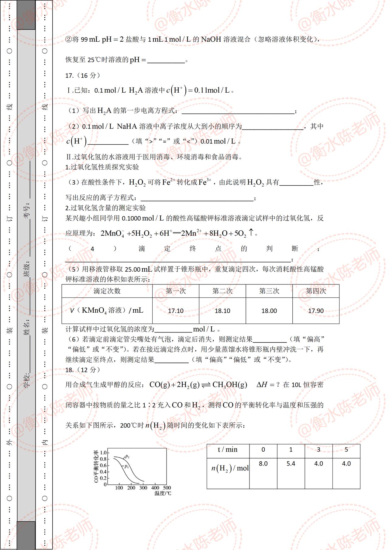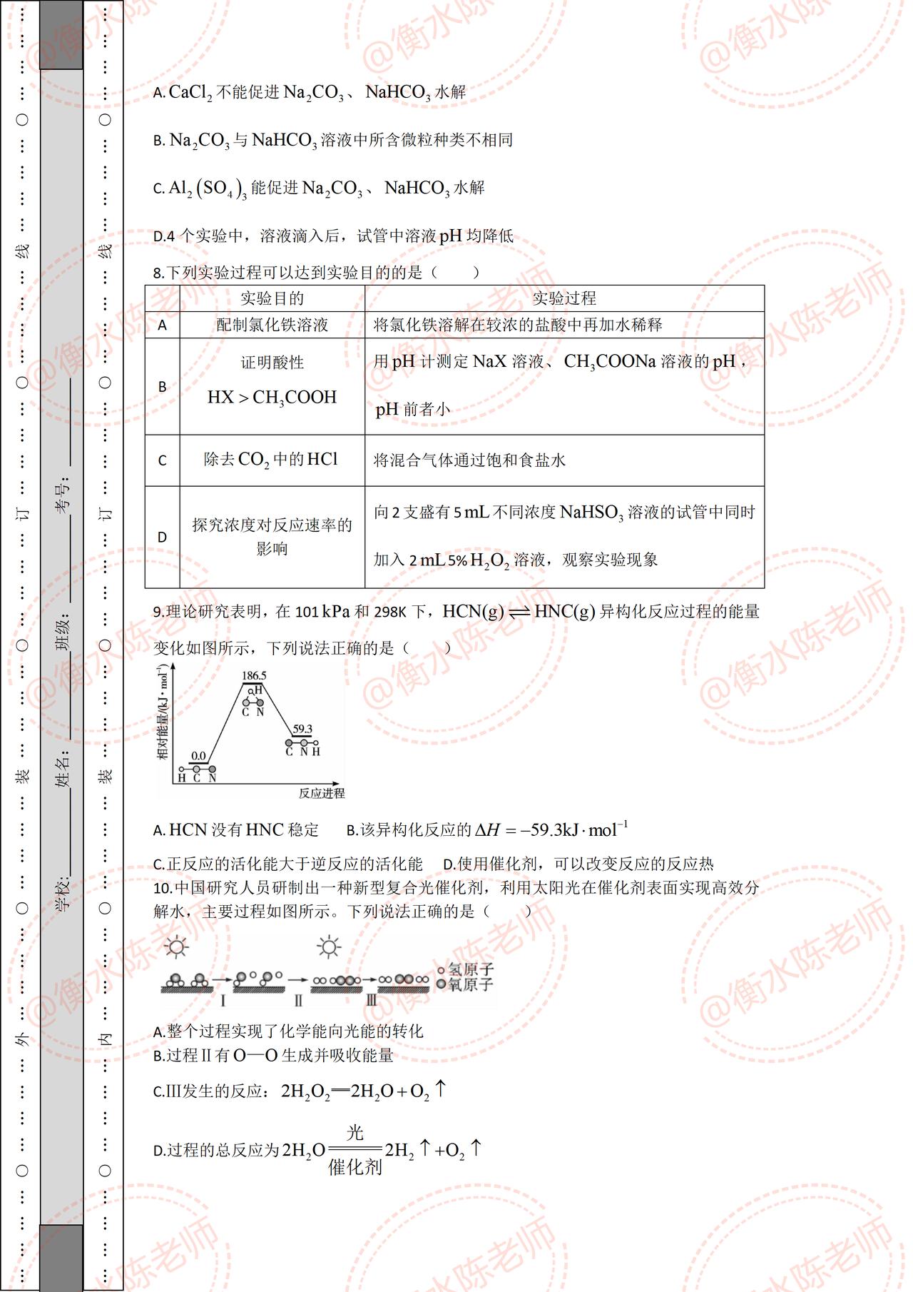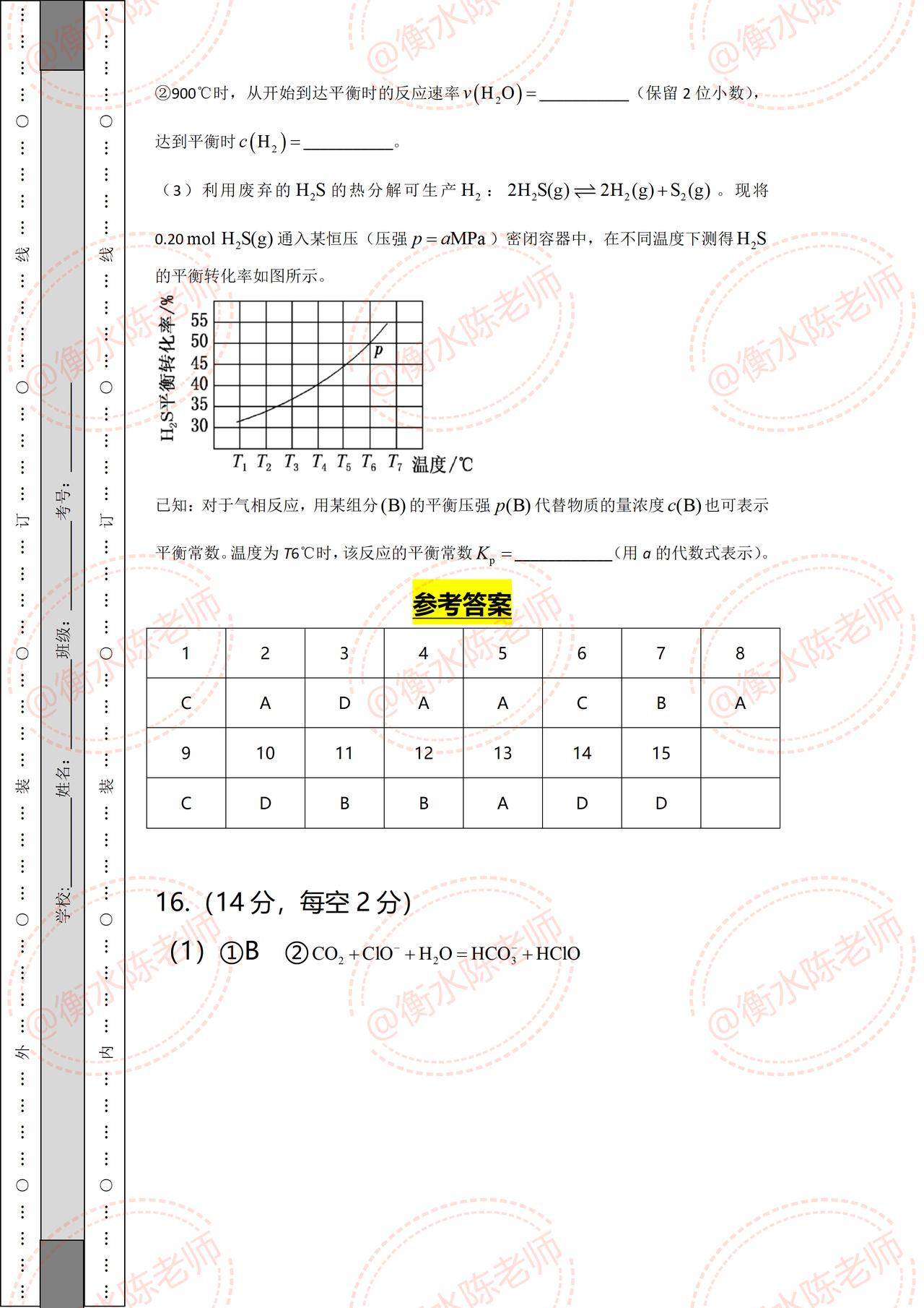 高二上学期化学期中考试,试卷必出重点考题,根据不同省份,版本编写的重点考题,月考成绩没考好的同学,提前做一遍自己城市对应的期中试卷,让你多考分数哦,想要获取的考生,记得和我沟通一下哦。