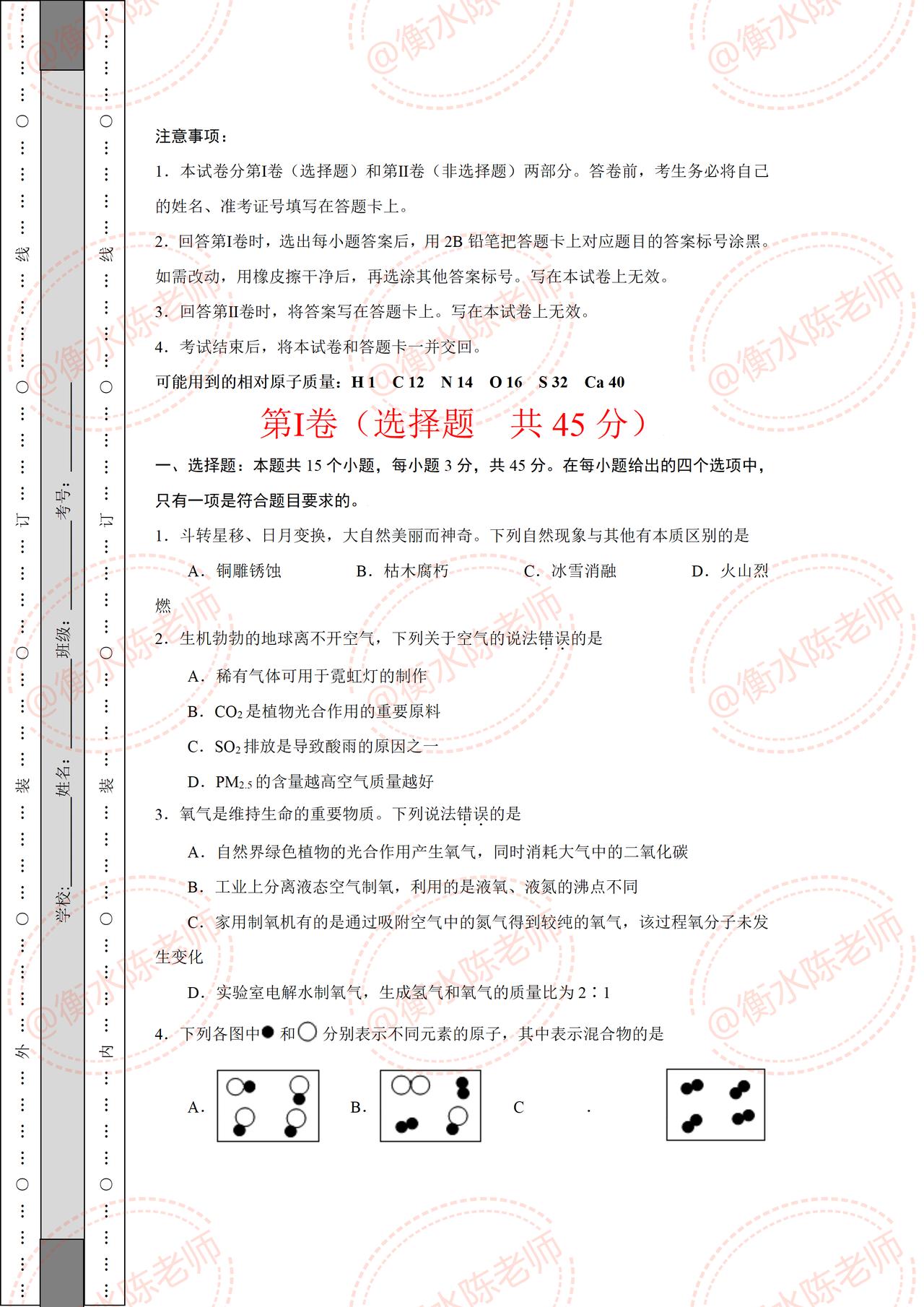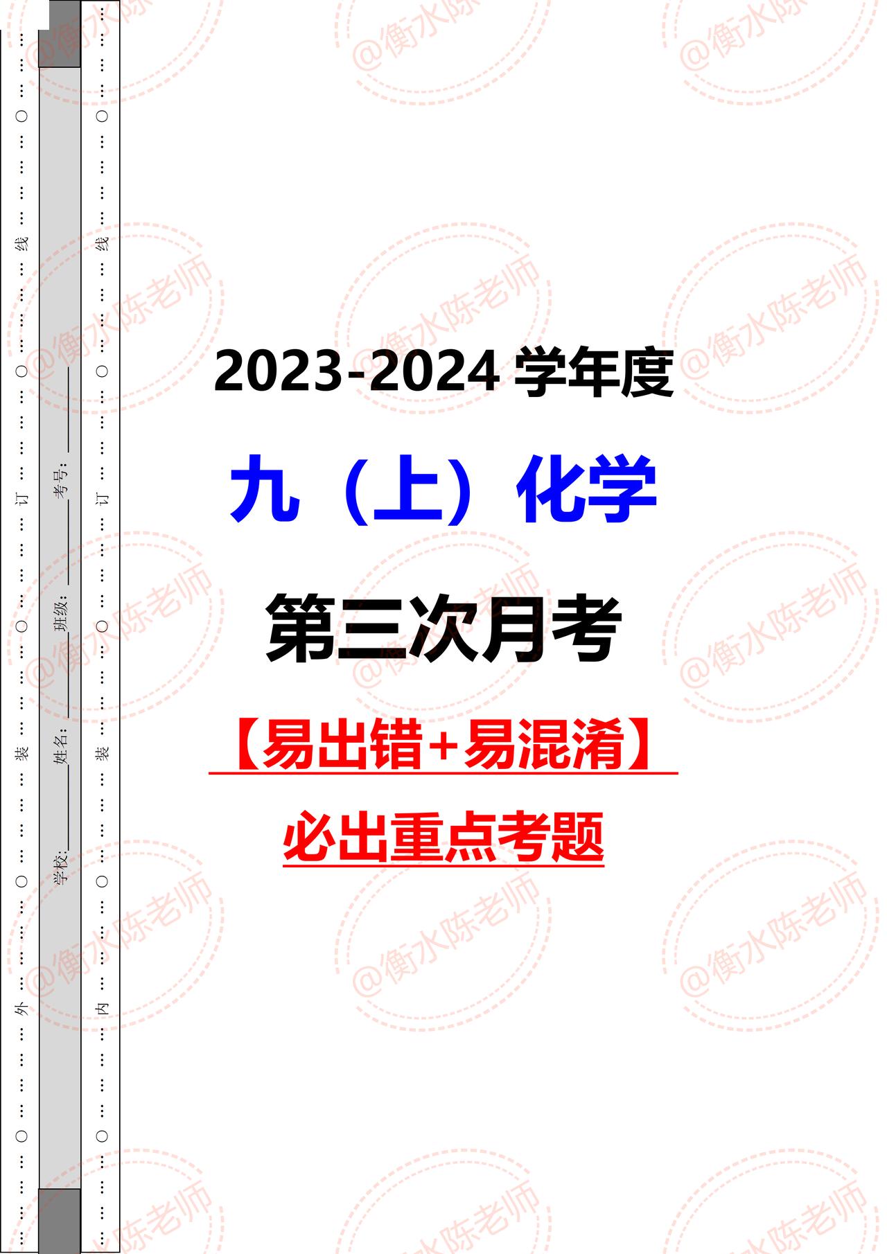 九上化学,第三次月考试卷,根据不同的城市、版本学校考试重点编写的,这套月考试卷,全是平时考试中易出错、易马虎、易混淆的热点考题,想要做一遍自己城市月考试卷的考生,记得和我沟通聊一聊哦。