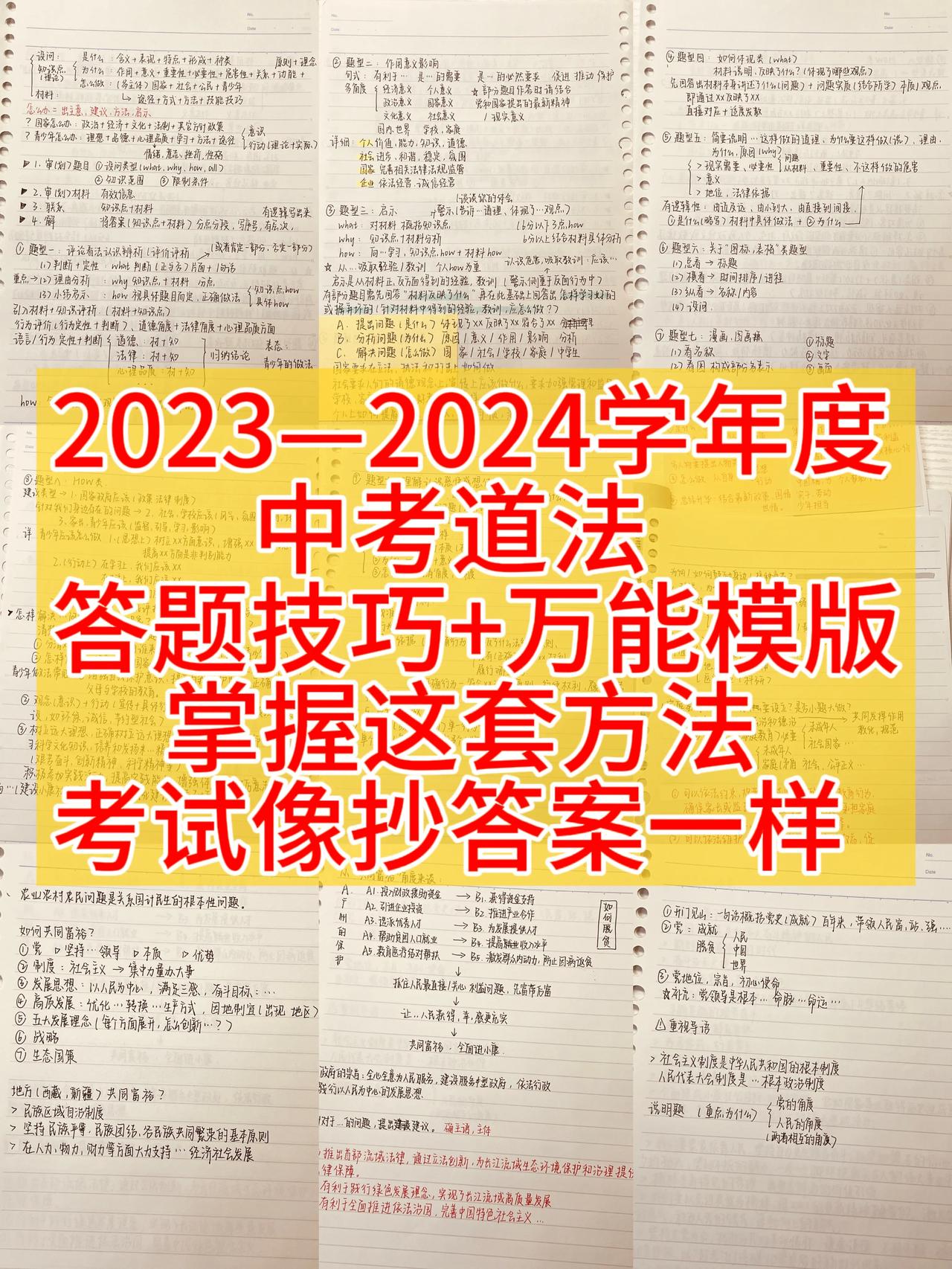 初中3年,无论初一,初二,还是初三,你的初中道法(政治),课下里一直很努力,课堂上也是认真听课,记录笔记,就是成绩总是提不上去,父母和孩子要引起重视了,说明你的学习方法已经不对了,要引起重视了,尤其是参加2024年中考生,更应该查找原因了,你们面临着中考升学的压力,中考差1分,有可能和重点高中擦肩而过。 经过6个多月的努力,联合50多位一线名师,按照不同城市,中考大纲编写的2024中考道法答题模版,解题技巧,万能解题方法,第一时间发给大家,内容涵盖选择题,主观题等答题方面的技巧,掌握这份资料,考试直接套用,就是让你考试不迷茫,不迷路,少走弯路,多考分数哦,由于资料内容比较多,只能发布一部分,想要获得全部,记得和我聊一聊哦。