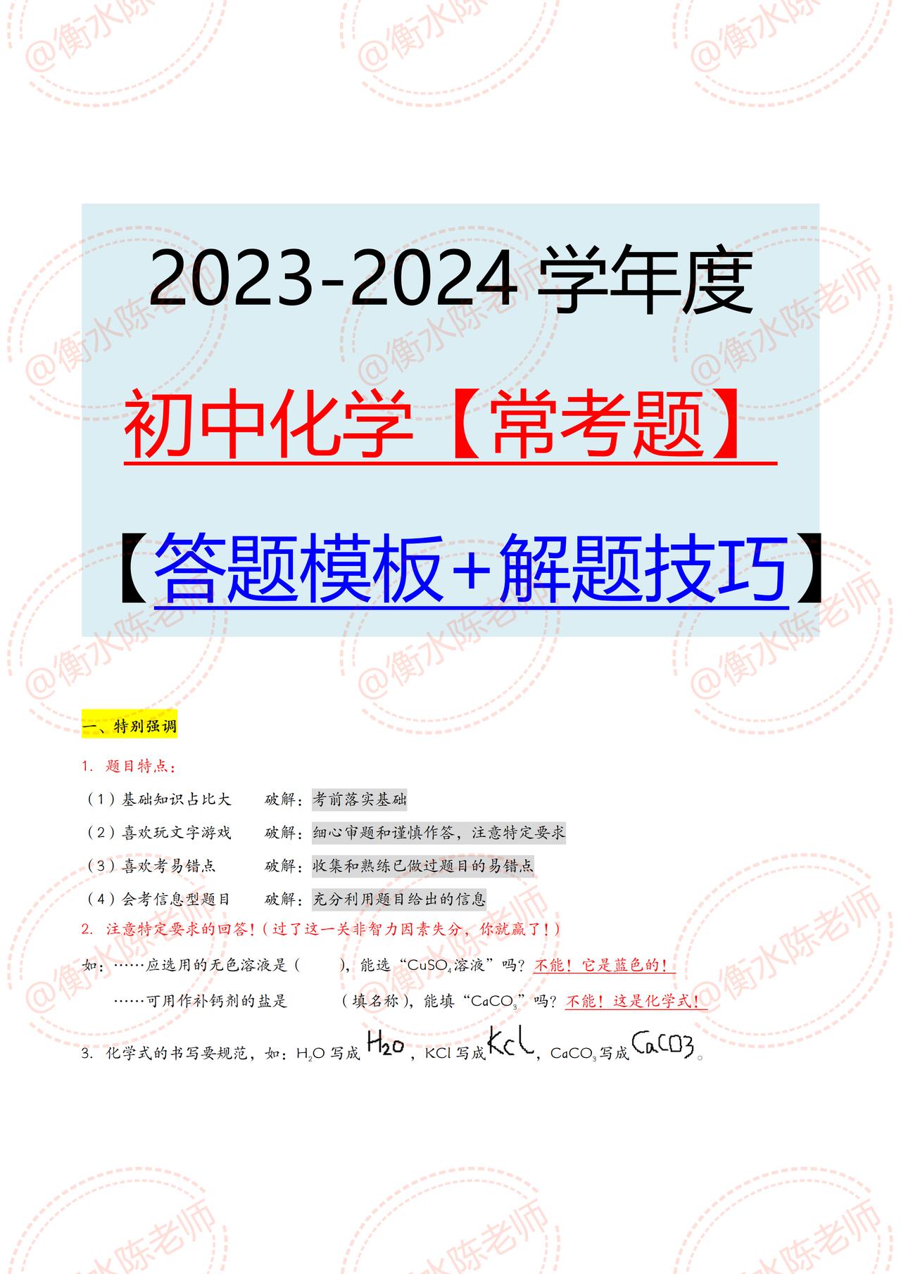 初中化学,成绩比较差的考生,西北工大名师,联合全国30多个省份,100多位名师,结合当地中考大纲编写的选择题,填空题,实验题等答题技巧,高分模板,成绩差的,好好看一下,考试让你少走弯路,多考分数。