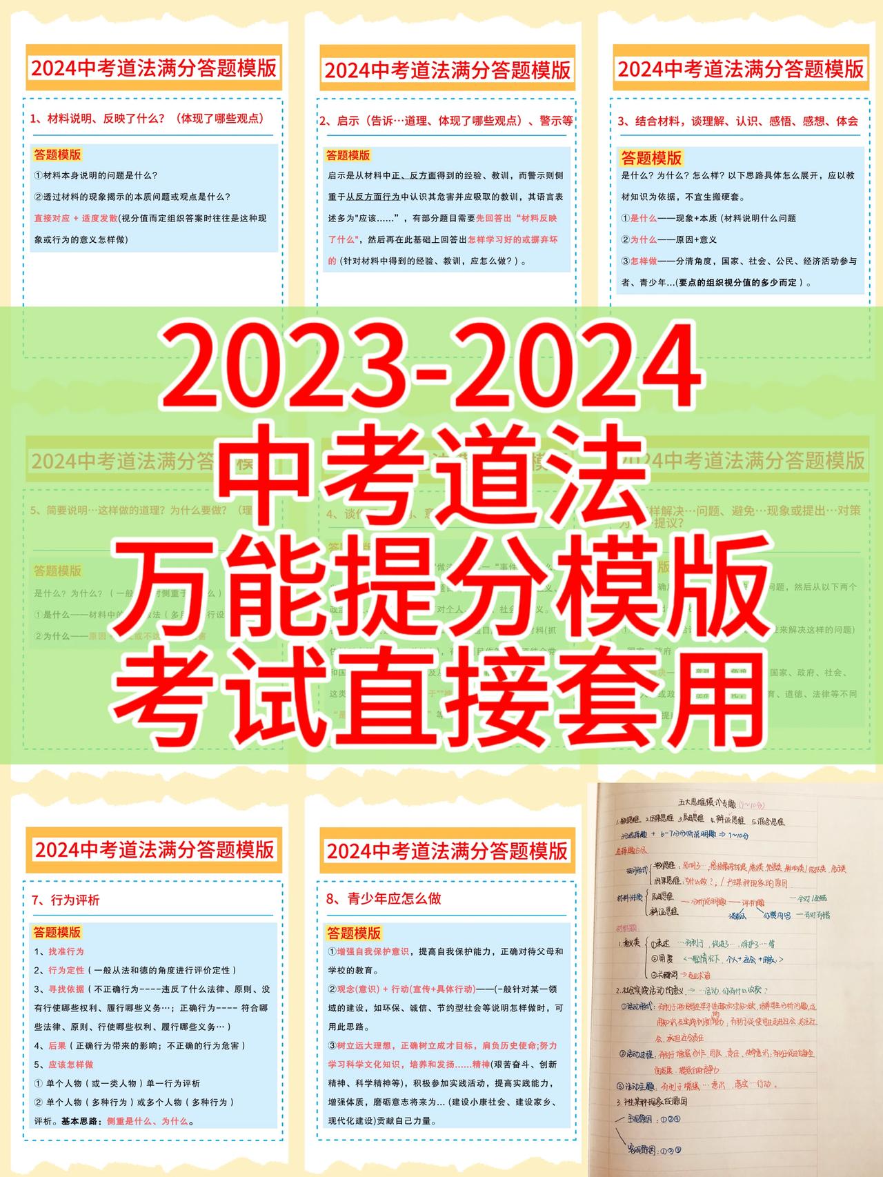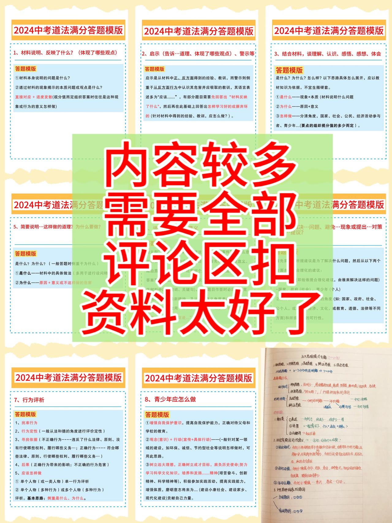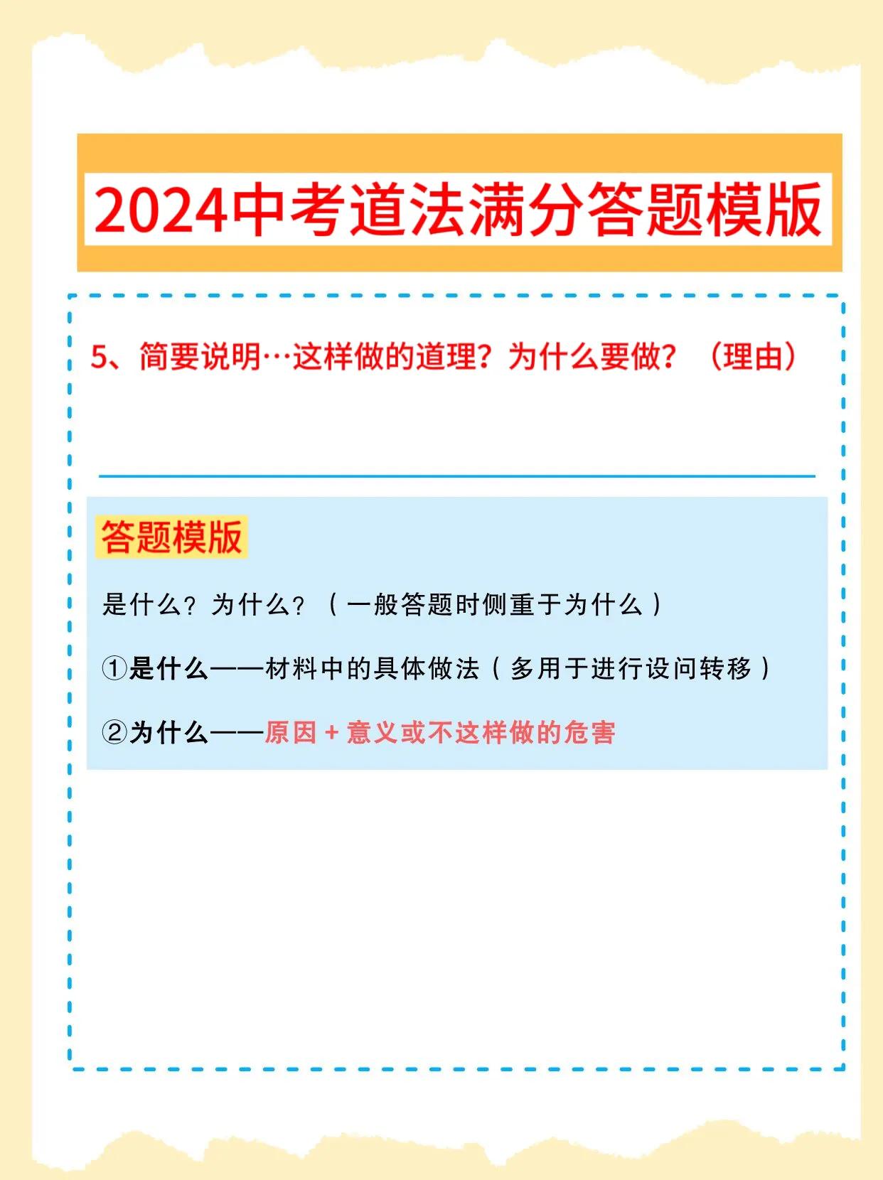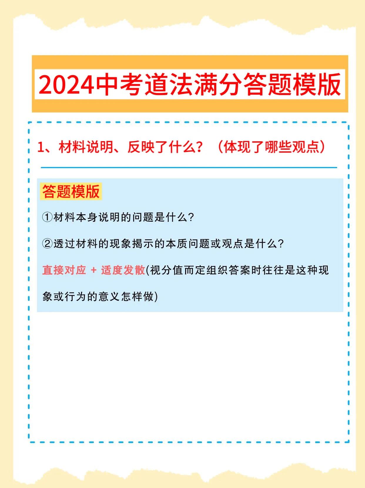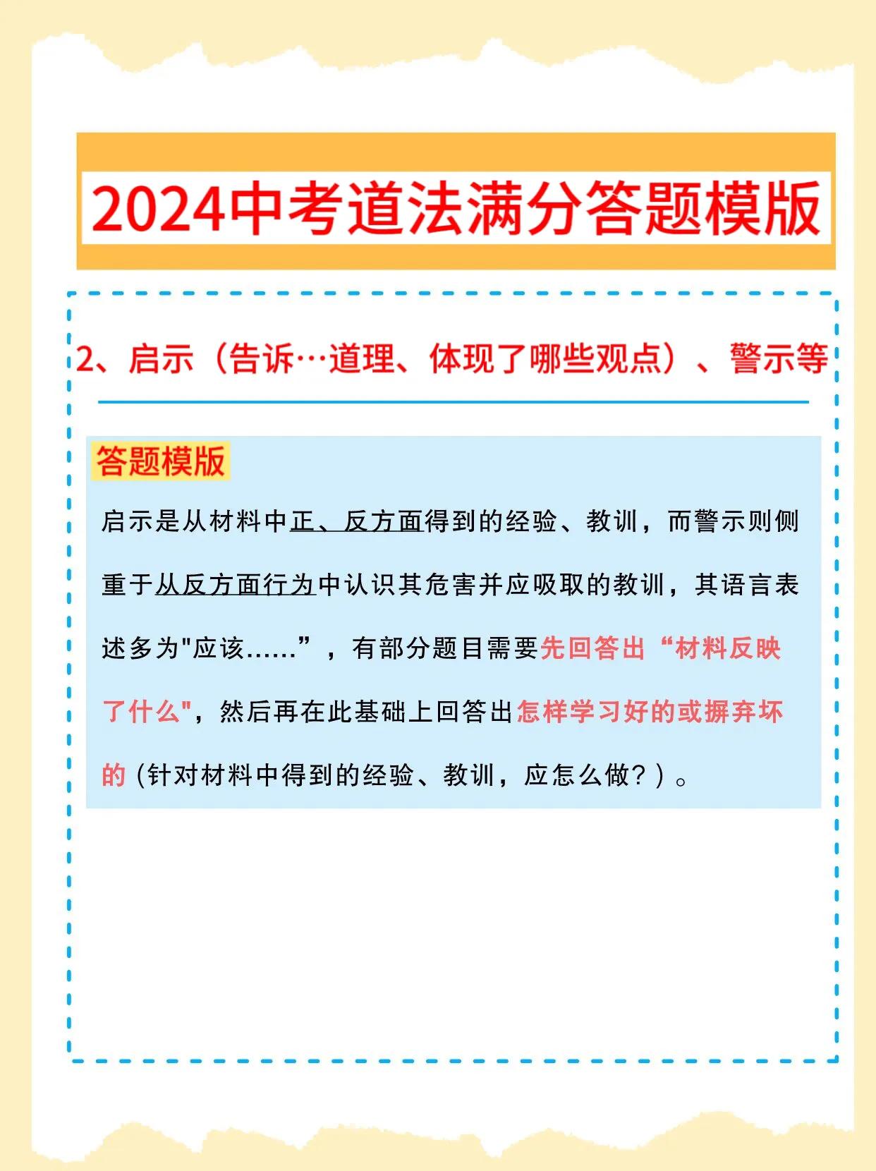 初中道法,成绩一直上不去,找不到方法,技巧的同学,记得要把这套2024年全新中考道法【答题满分模版】,课下认真看一遍,总结的方法非常到位,讲解也是非常细致,涵盖的解题思路,答题上的技巧,都涵盖在内,考试的时候,只需要按照这套答题上的方法,直接套用,考试让你稳考高分,从此告别低分,让你考试中少走弯路,多考分数,由于资料较多,需要全部的,和我沟通聊一下吧!